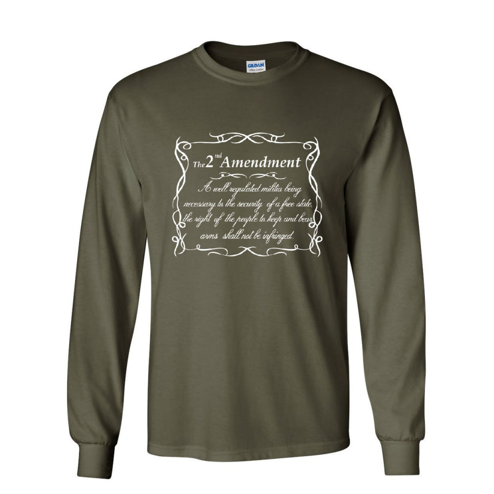 THE 2ND AMENDMENT TEXT 2nd amendment long sleeve t-shirt freedom right to bear arms constitution tee military green