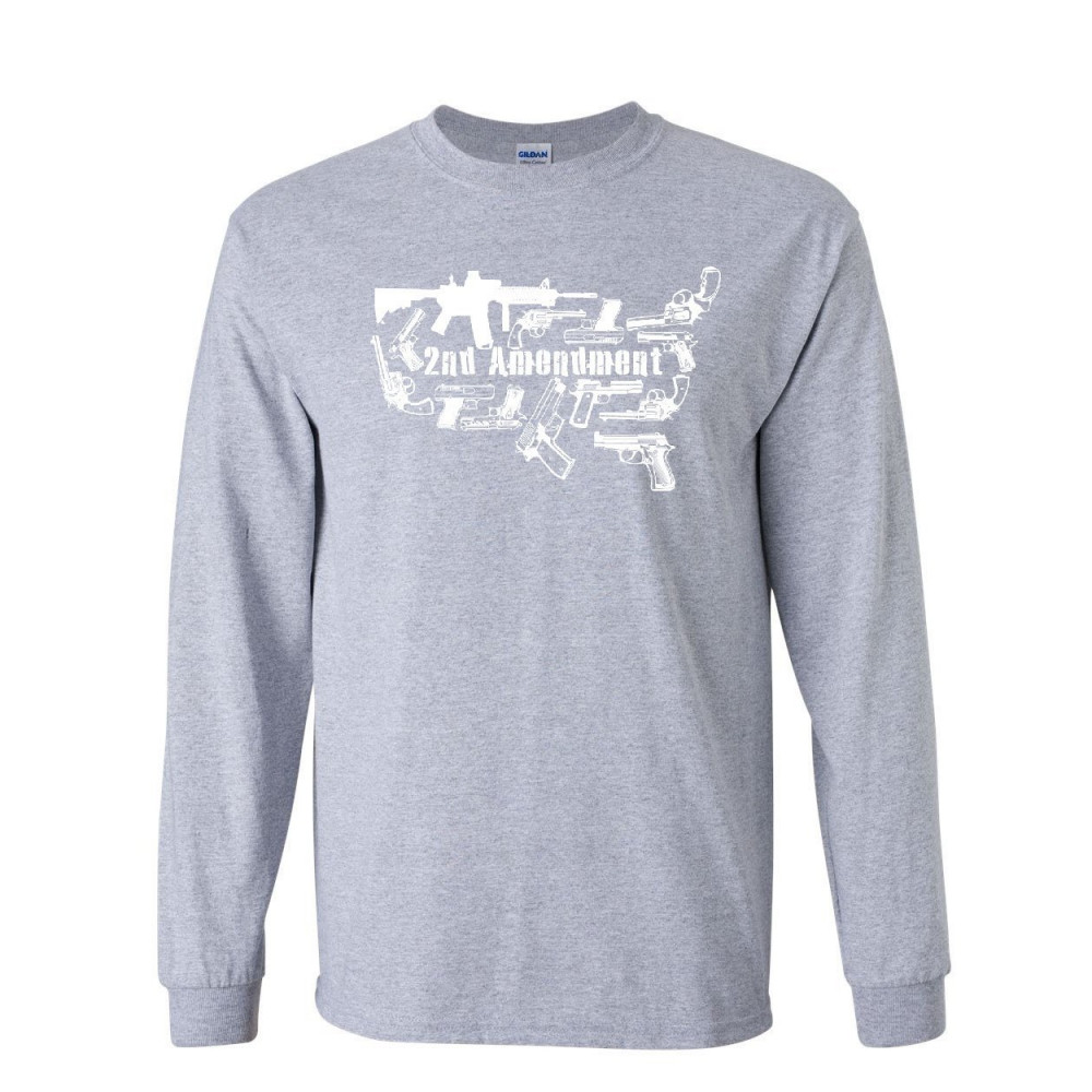 2ND AMENDMENT US SILHOUETTE long sleeve t-shirt right to bear arms 2a guns tee gray