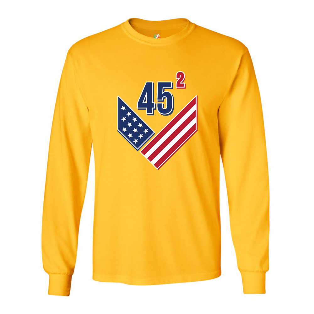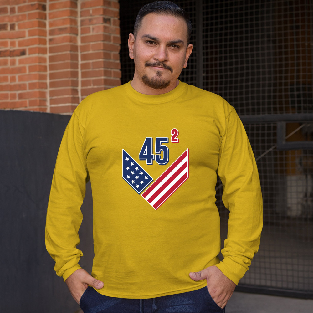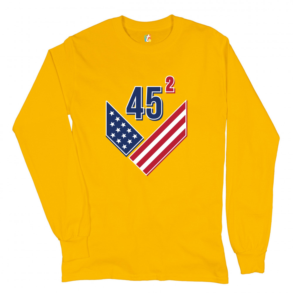 45 SQUARED long sleeve t-shirt two terms re-elect donald trump conservative yellow
