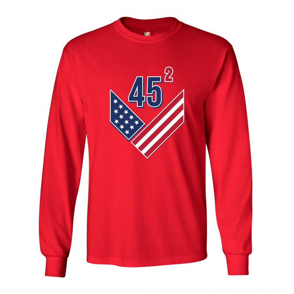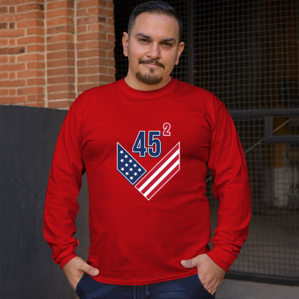 45 SQUARED long sleeve t-shirt two terms re-elect donald trump conservative red