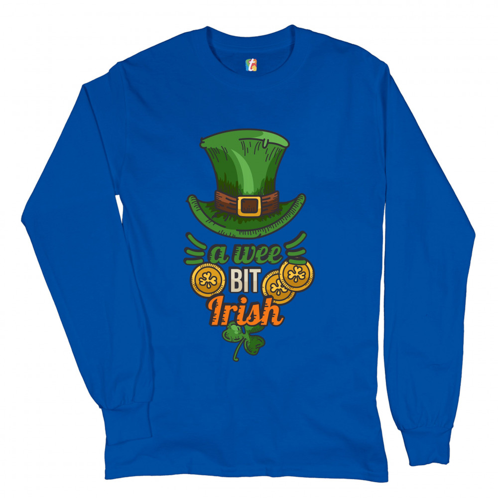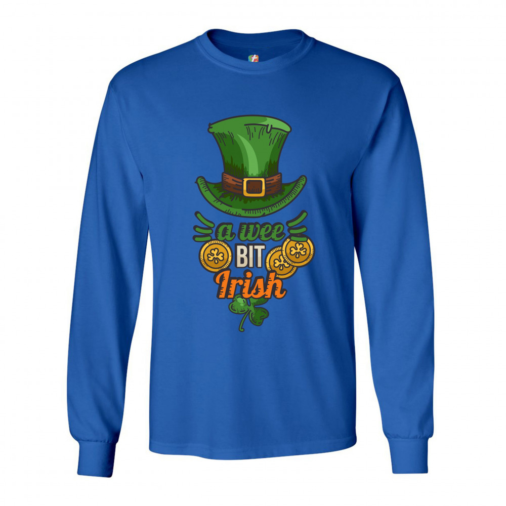 A WEE BIT IRISH long sleeve t-shirt st. patrick's day shamrock leprechaun hat royal blue