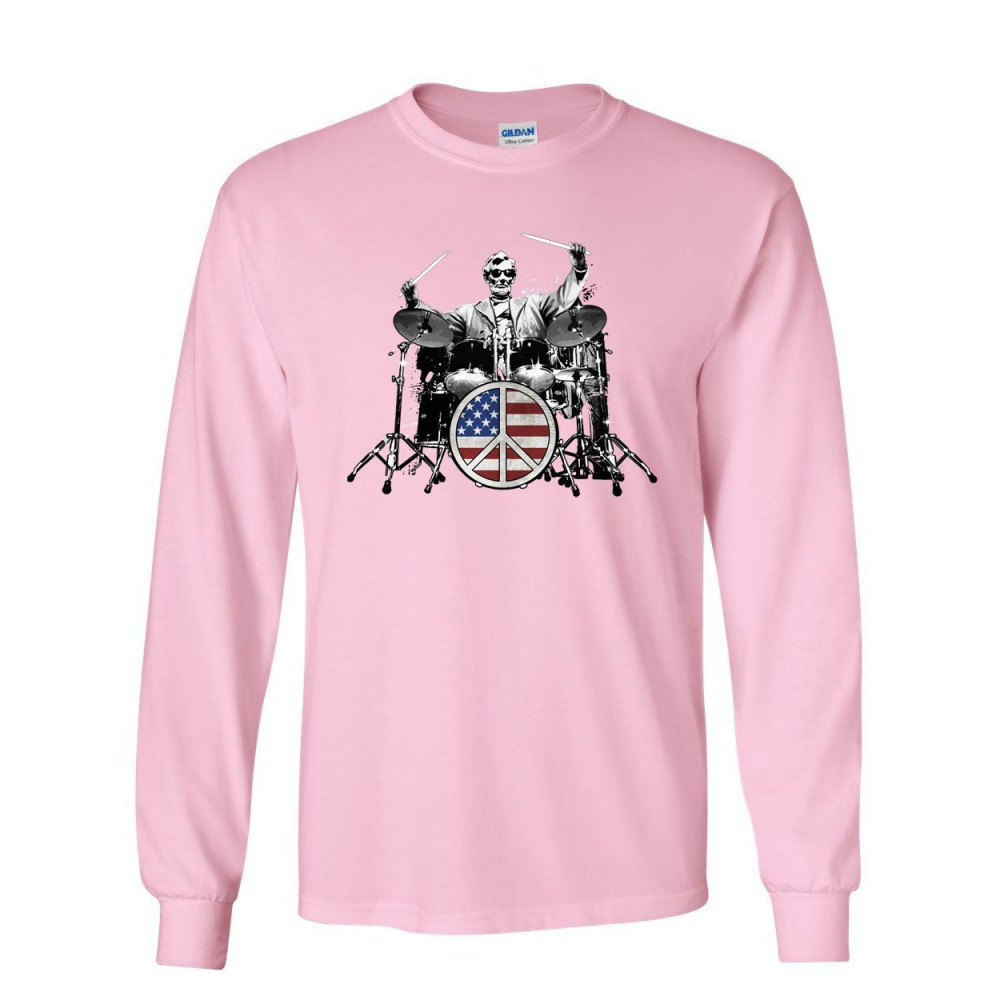 ABRAHAM LINCOLN ROCK & ROLL STAR long sleeve t-shirt lincoln memorial peace tee light pink