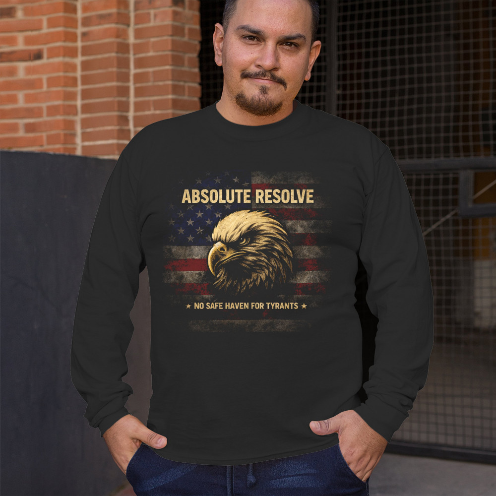 ABSOLUTE RESOLVE long sleeve t-shirt american flag bald eagle military force black