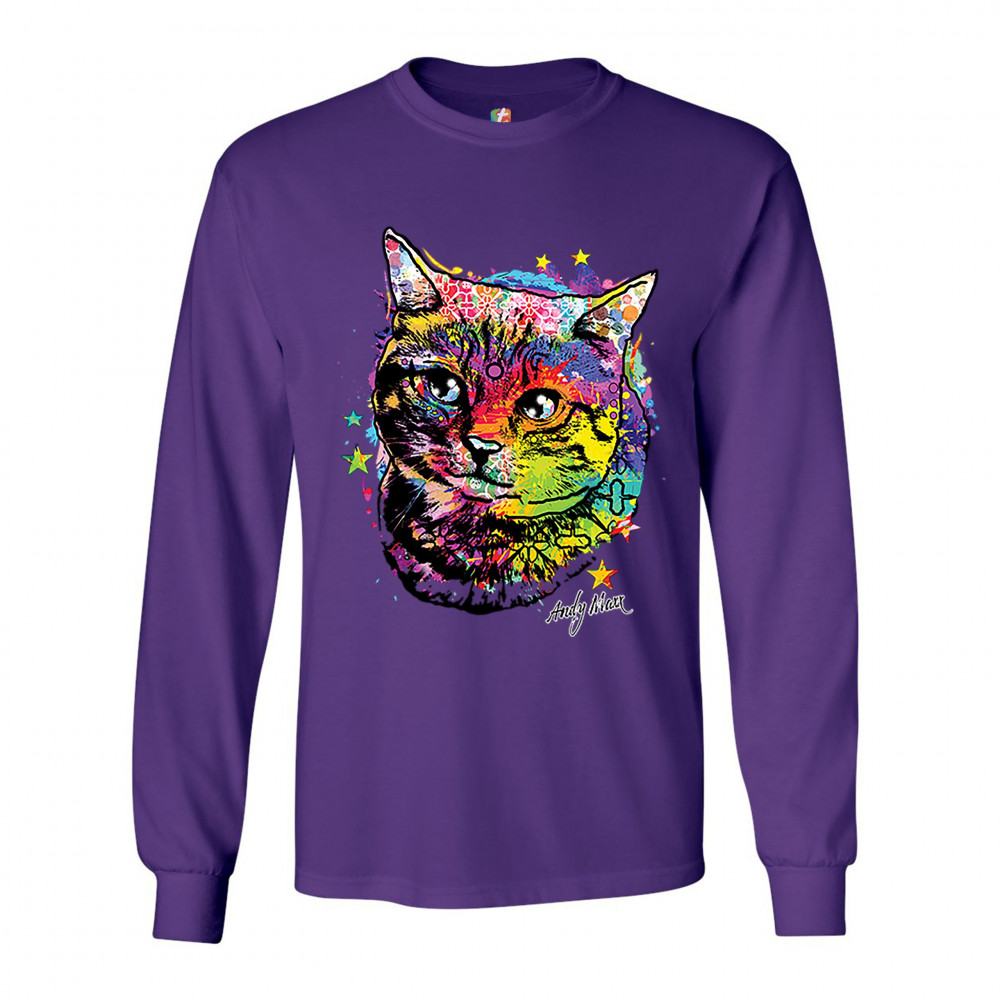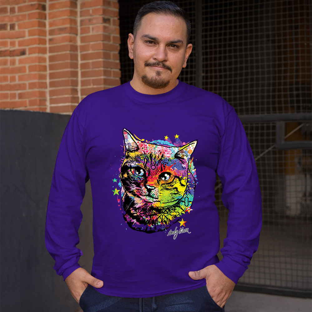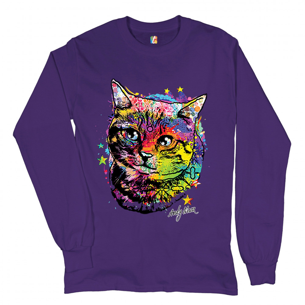 ADORABLE KITTEN long sleeve t-shirt neon multicolor kitty andy maxx cat lover purple