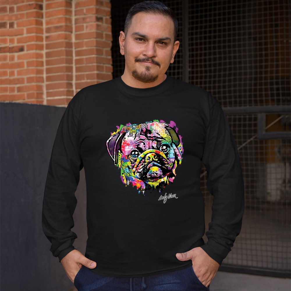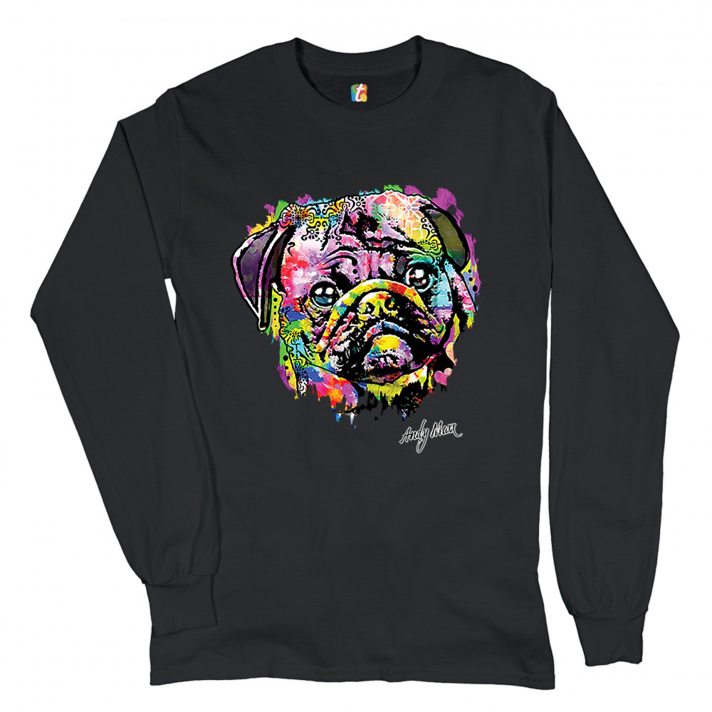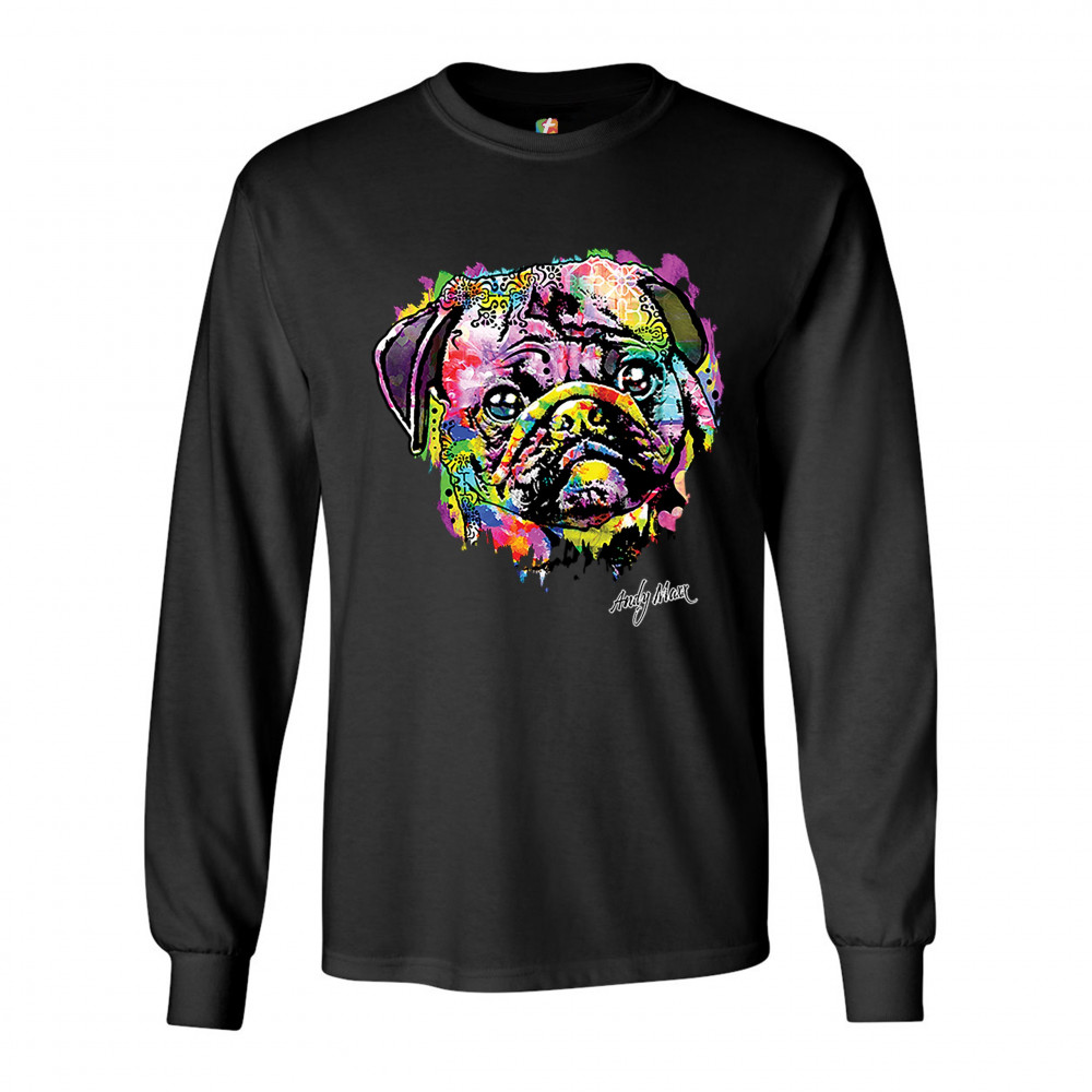 ADORABLE PUG long sleeve t-shirt andy maxx pet owner i love my dog doggie black