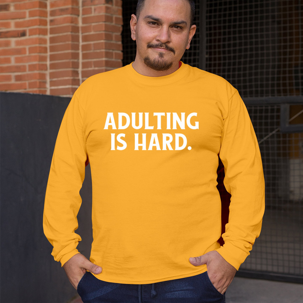 Our 'ADULTING IS HARD.' shirt is the ultimate expression of modern life's humorous side. Ideal for anyone from stressed-out parents to sarcastic Gen Z teenagers who believe 'don't grow up it's a trap.' Whether you're celebrating a birthday or just need to say 'nope' to adulting, this tee is your badge of honor. Embrace your 'adultish' lifestyle, with a side of wine or coffee, and let the world know that you're doing your best.