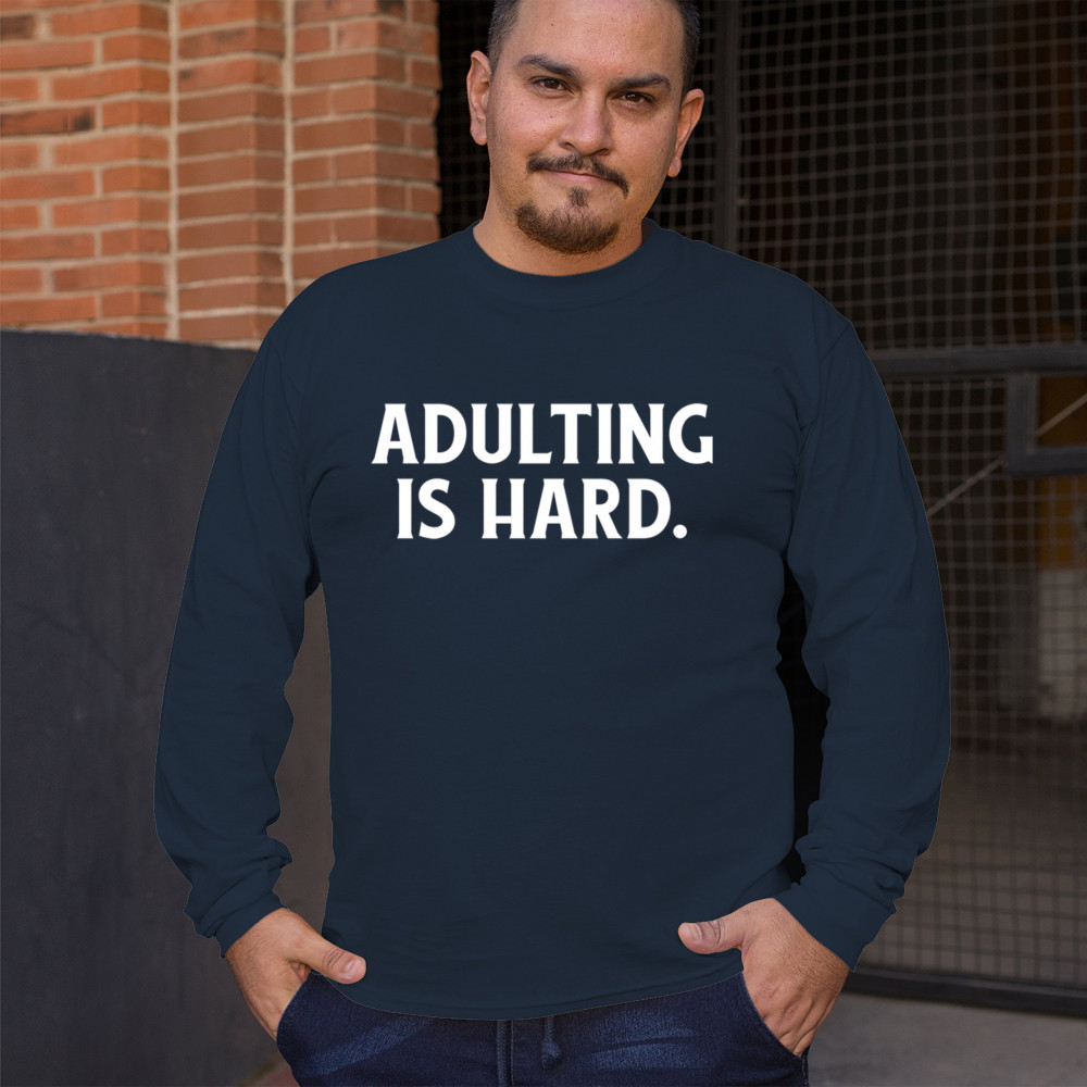 Our 'ADULTING IS HARD.' shirt is the ultimate expression of modern life's humorous side. Ideal for anyone from stressed-out parents to sarcastic Gen Z teenagers who believe 'don't grow up it's a trap.' Whether you're celebrating a birthday or just need to say 'nope' to adulting, this tee is your badge of honor. Embrace your 'adultish' lifestyle, with a side of wine or coffee, and let the world know that you're doing your best.