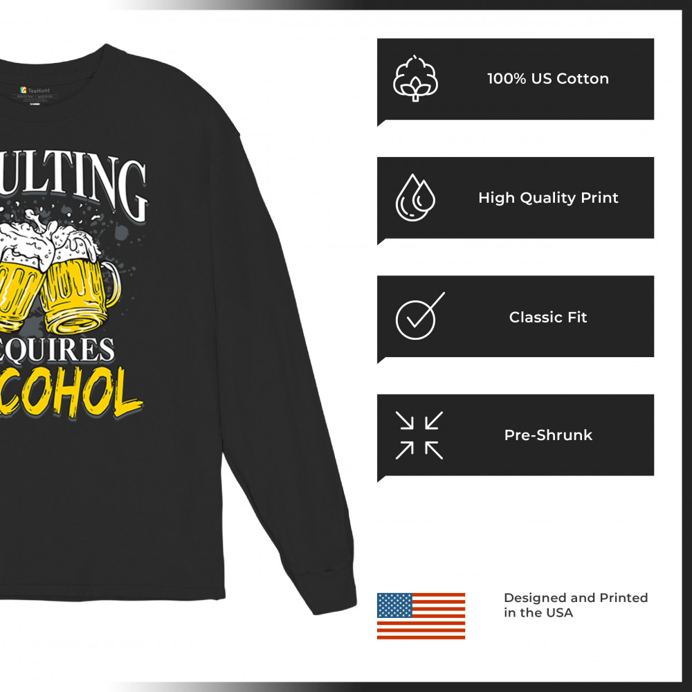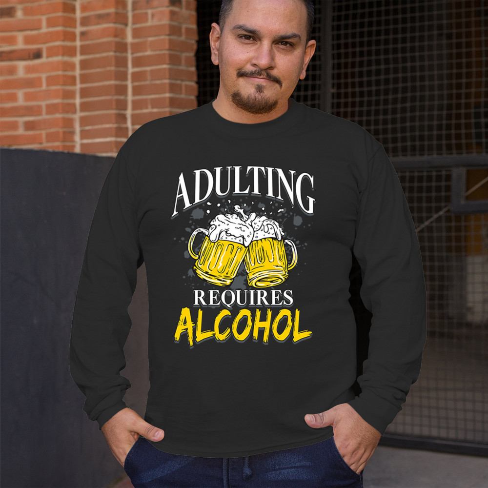 This bold design features two foamy beer mugs clinking together under the phrase “Adulting Requires Alcohol.†Perfect for sarcastic beer lovers, party animals, and anyone navigating grown-up life with booze in hand. Ideal for bars, weekends, or just surviving Mondays with humor and hops.