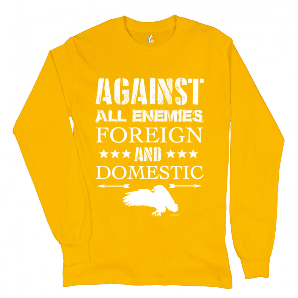 AGAINST ALL ENEMIES FOREIGN AND DOMESTIC long sleeve t-shirt patriotic veteran yellow
