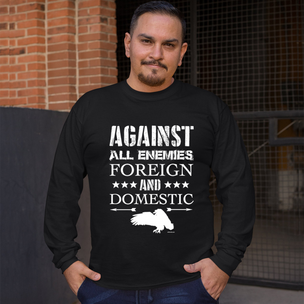 AGAINST ALL ENEMIES FOREIGN AND DOMESTIC long sleeve t-shirt patriotic veteran black