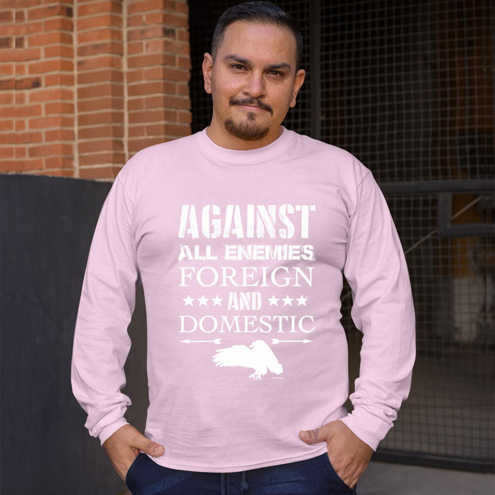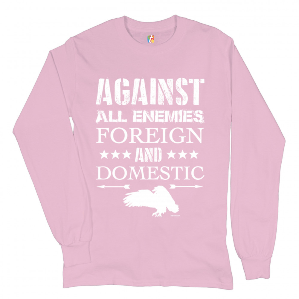 AGAINST ALL ENEMIES FOREIGN AND DOMESTIC long sleeve t-shirt patriotic veteran pink