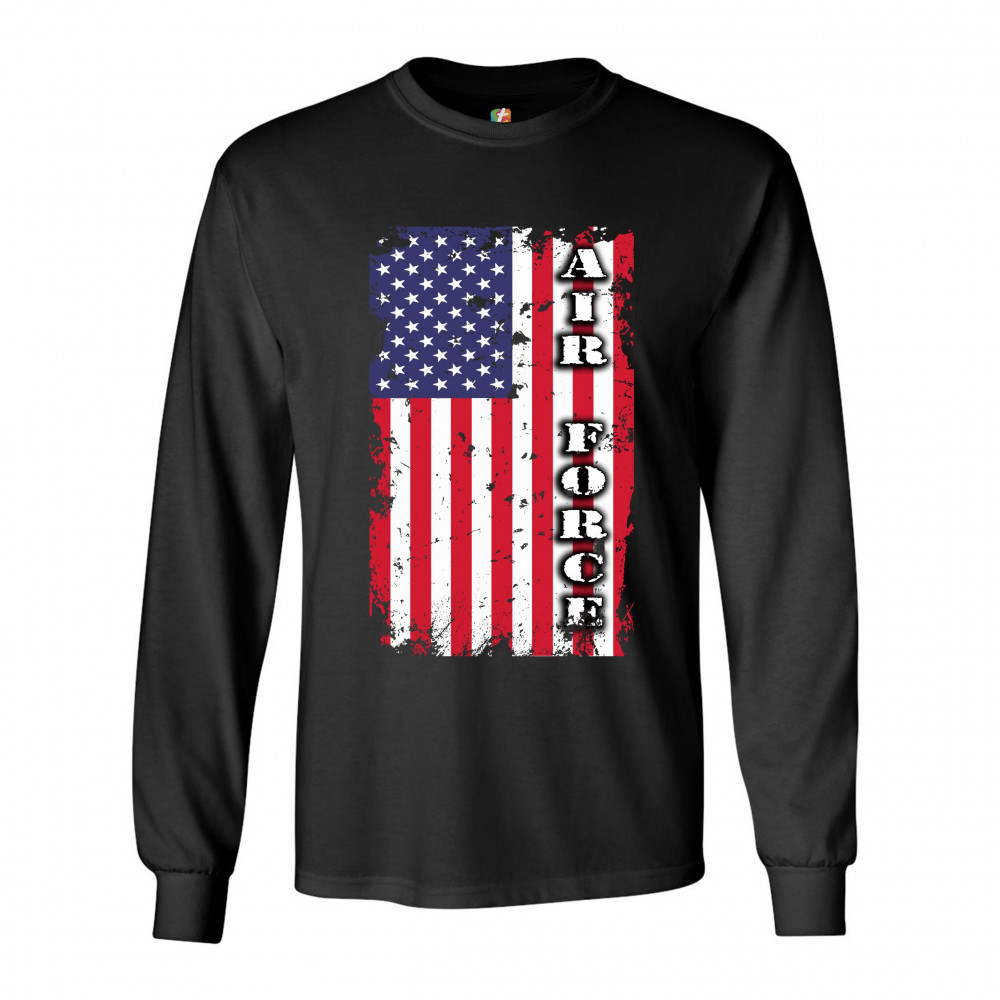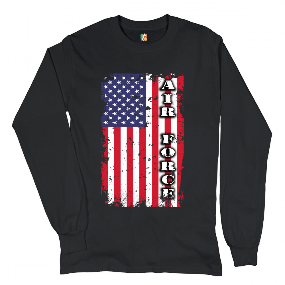AIR FORCE long sleeve t-shirt distressed american flag u.s. armed forces black