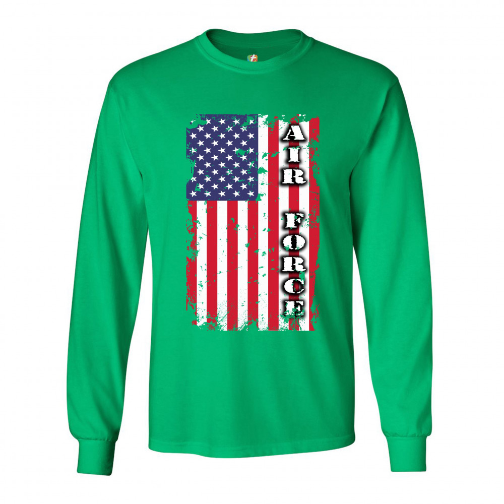 AIR FORCE long sleeve t-shirt distressed american flag u.s. armed forces green