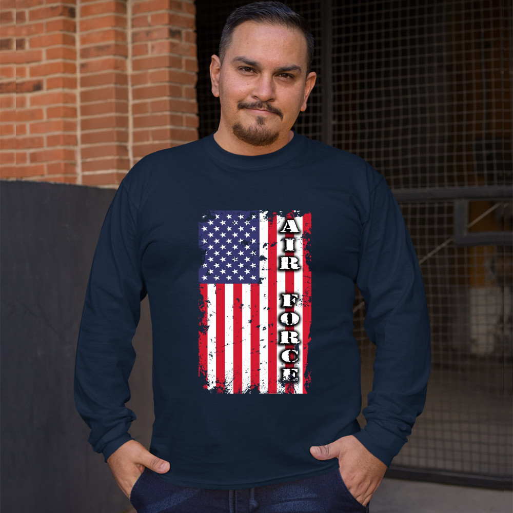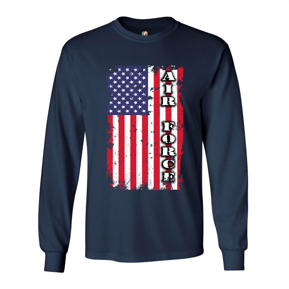 AIR FORCE long sleeve t-shirt distressed american flag u.s. armed forces navy blue