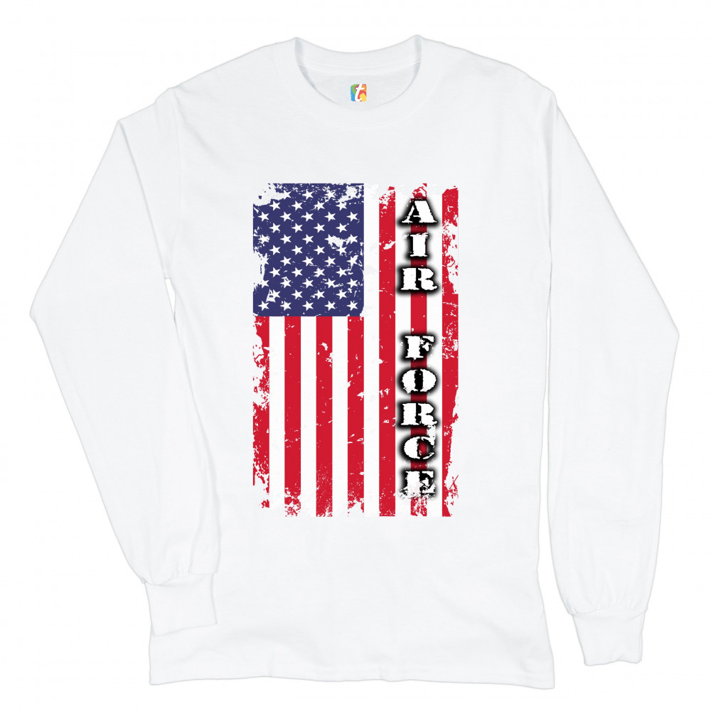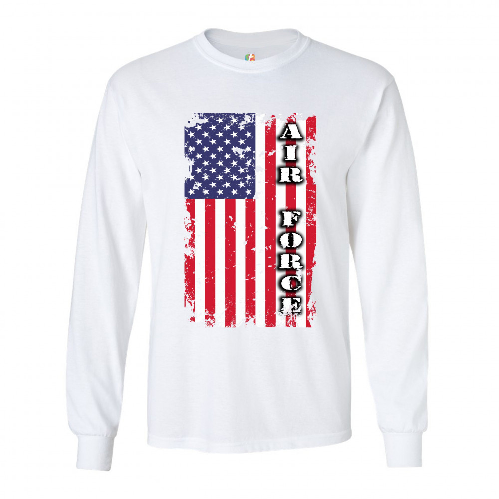 AIR FORCE long sleeve t-shirt distressed american flag u.s. armed forces white
