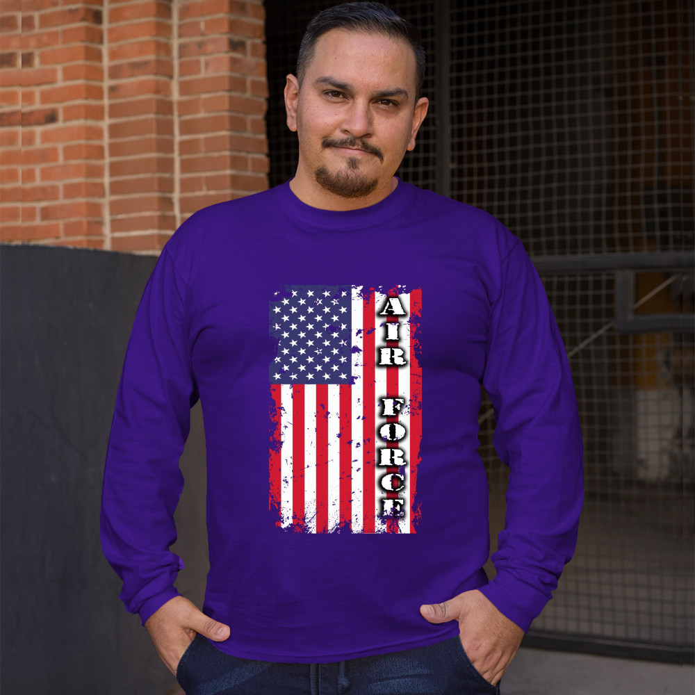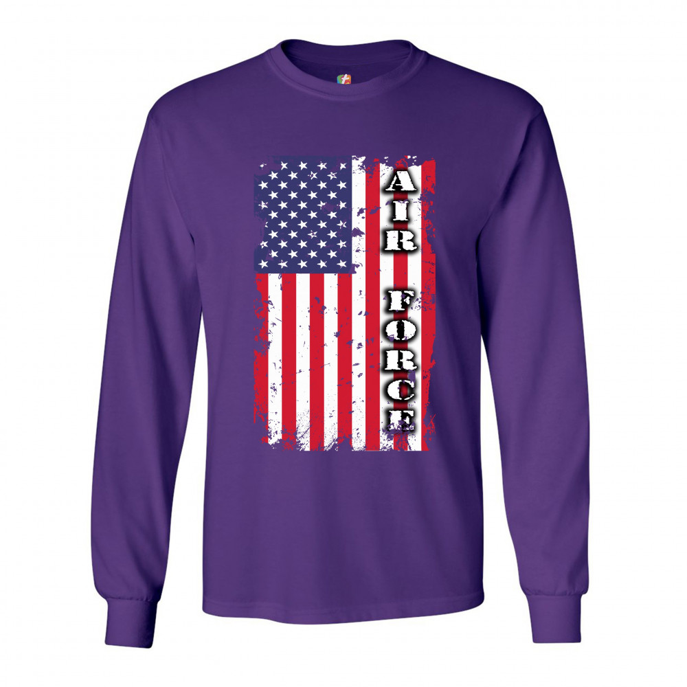 AIR FORCE long sleeve t-shirt distressed american flag u.s. armed forces purple