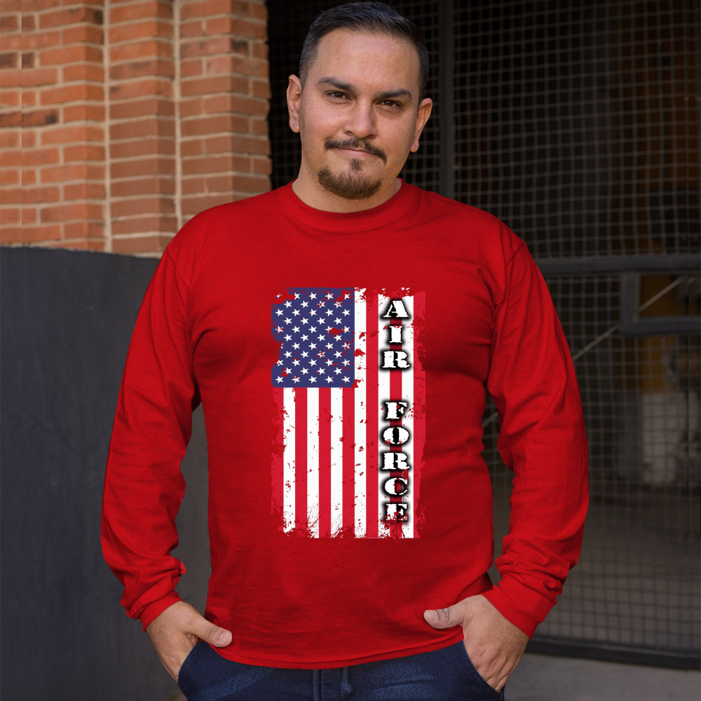 AIR FORCE long sleeve t-shirt distressed american flag u.s. armed forces red