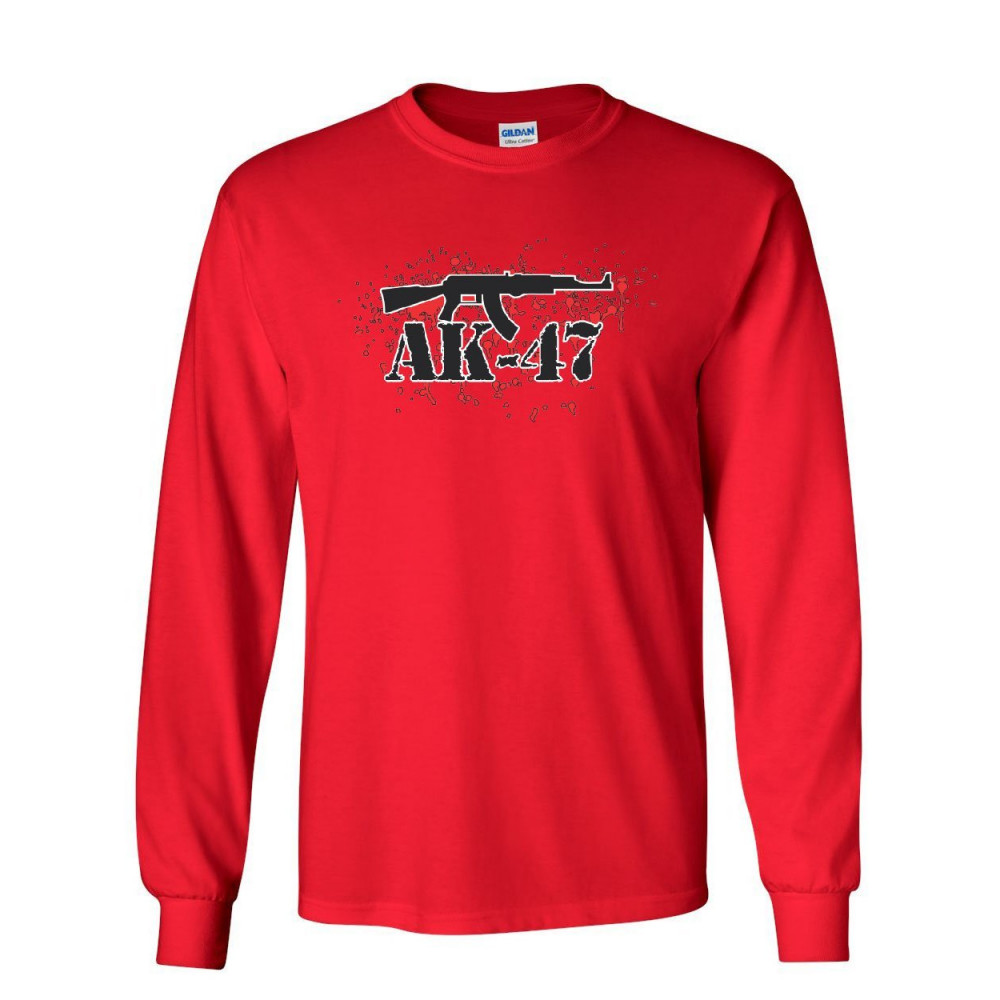 AK-47 rifle long sleeve t-shirt 2nd amendment supporter defend 2a gun rights tee red