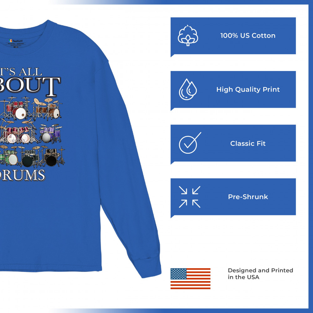 Celebrate the beat with this colorful drum set design that highlights nine complete kits in a bold grid. Whether you’re a beginner or a pro, this is for drummers, percussionists, music students, and rhythm lovers who take their passion seriously. Perfect for stage gigs, jam sessions, or casual everyday wear that says “It’s all about drums.â€