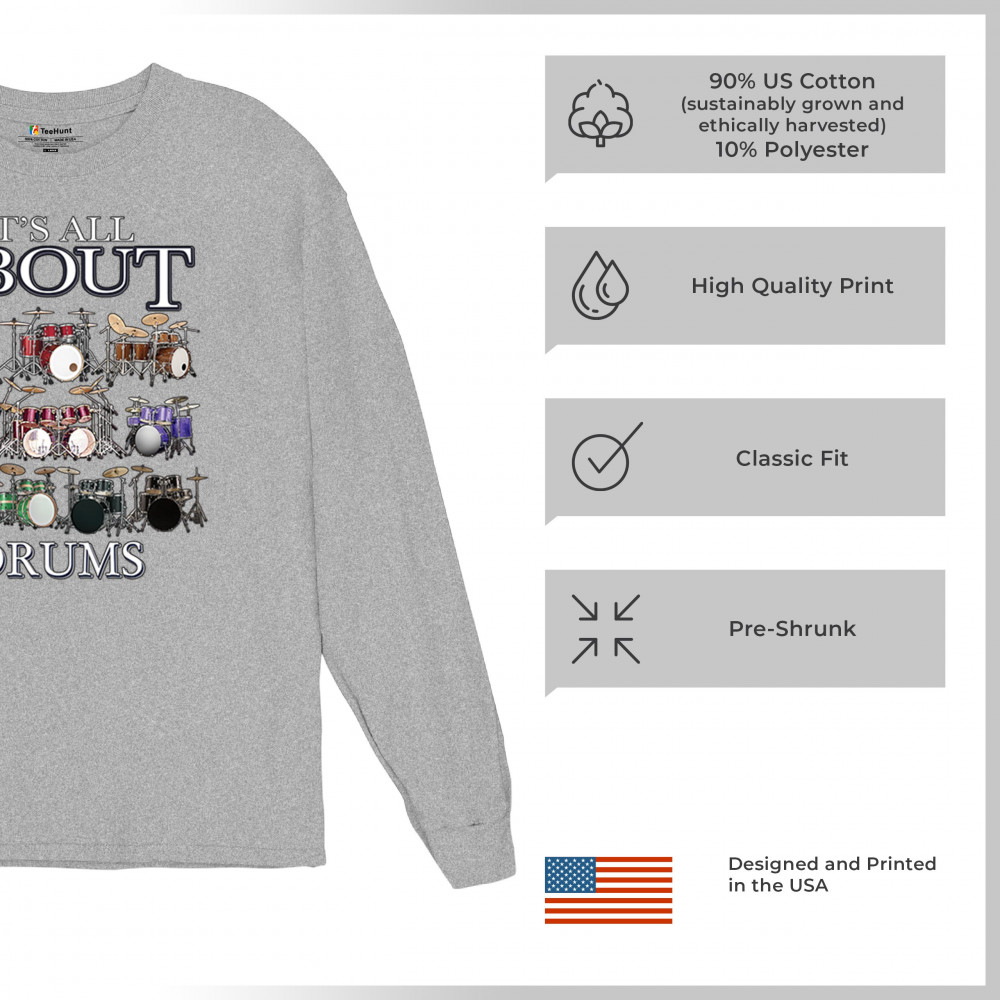 Celebrate the beat with this colorful drum set design that highlights nine complete kits in a bold grid. Whether you’re a beginner or a pro, this is for drummers, percussionists, music students, and rhythm lovers who take their passion seriously. Perfect for stage gigs, jam sessions, or casual everyday wear that says “It’s all about drums.â€