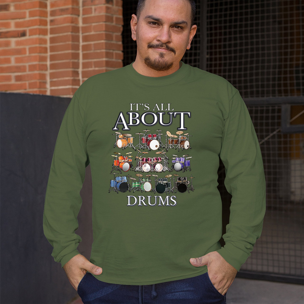 Celebrate the beat with this colorful drum set design that highlights nine complete kits in a bold grid. Whether you’re a beginner or a pro, this is for drummers, percussionists, music students, and rhythm lovers who take their passion seriously. Perfect for stage gigs, jam sessions, or casual everyday wear that says “It’s all about drums.â€