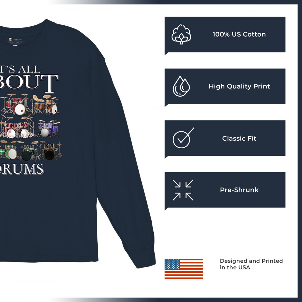 Celebrate the beat with this colorful drum set design that highlights nine complete kits in a bold grid. Whether you’re a beginner or a pro, this is for drummers, percussionists, music students, and rhythm lovers who take their passion seriously. Perfect for stage gigs, jam sessions, or casual everyday wear that says “It’s all about drums.â€