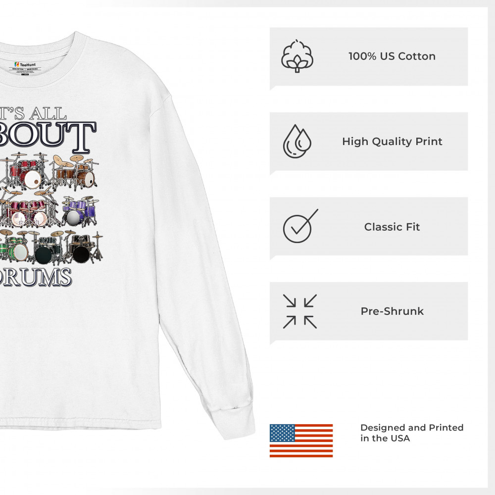 Celebrate the beat with this colorful drum set design that highlights nine complete kits in a bold grid. Whether you’re a beginner or a pro, this is for drummers, percussionists, music students, and rhythm lovers who take their passion seriously. Perfect for stage gigs, jam sessions, or casual everyday wear that says “It’s all about drums.â€
