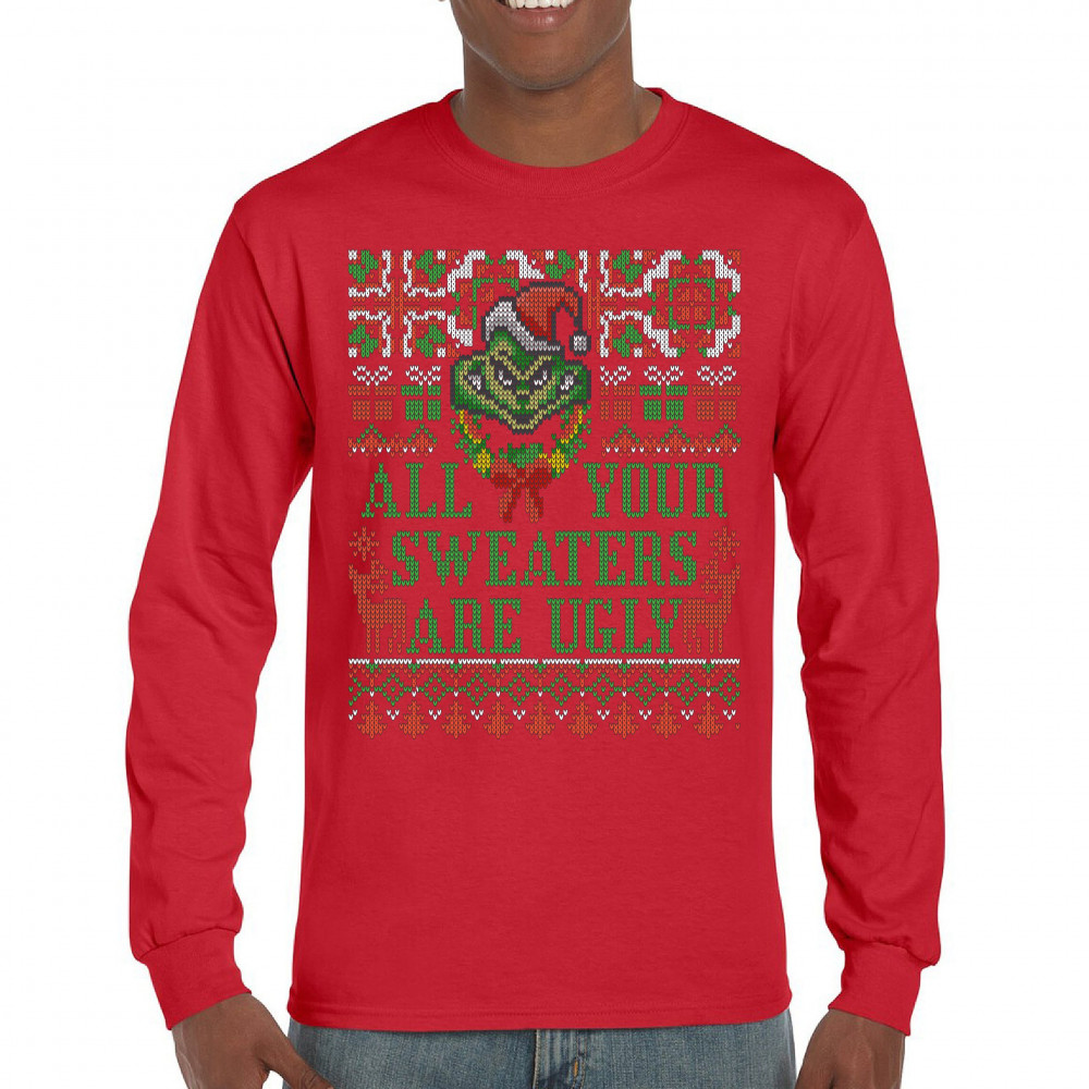 ALL YOUR SWEATERS ARE UGLY long sleeve t-shirt funny merry christmas rudolph red