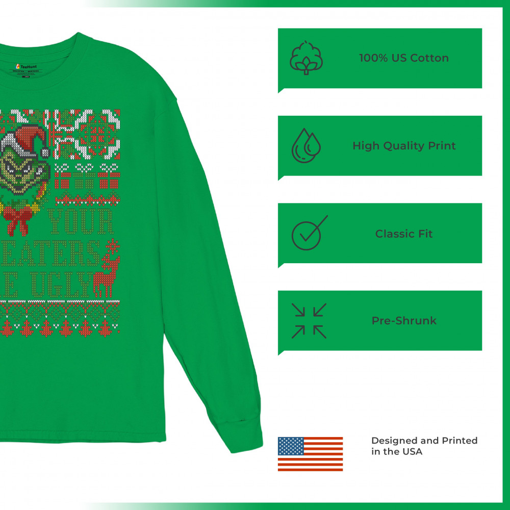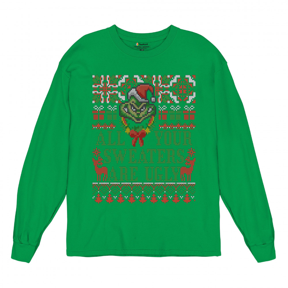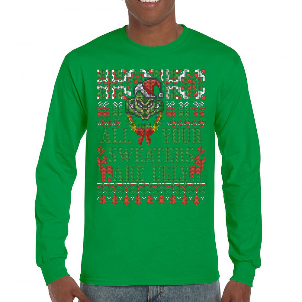 ALL YOUR SWEATERS ARE UGLY long sleeve t-shirt funny merry christmas rudolph green