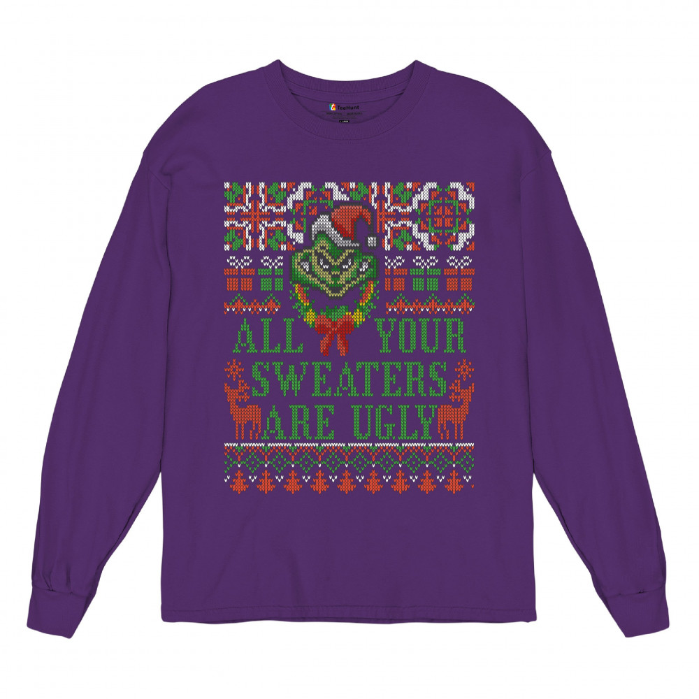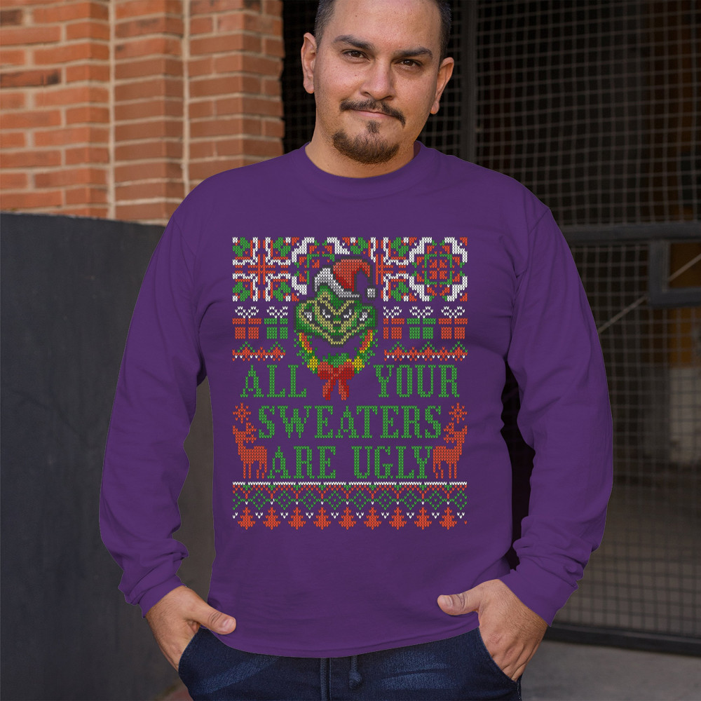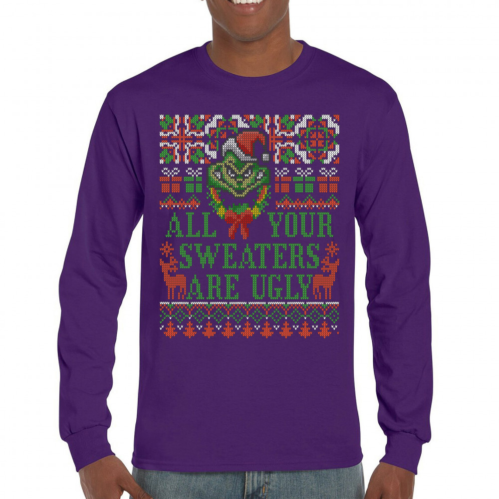 ALL YOUR SWEATERS ARE UGLY long sleeve t-shirt funny merry christmas rudolph purple