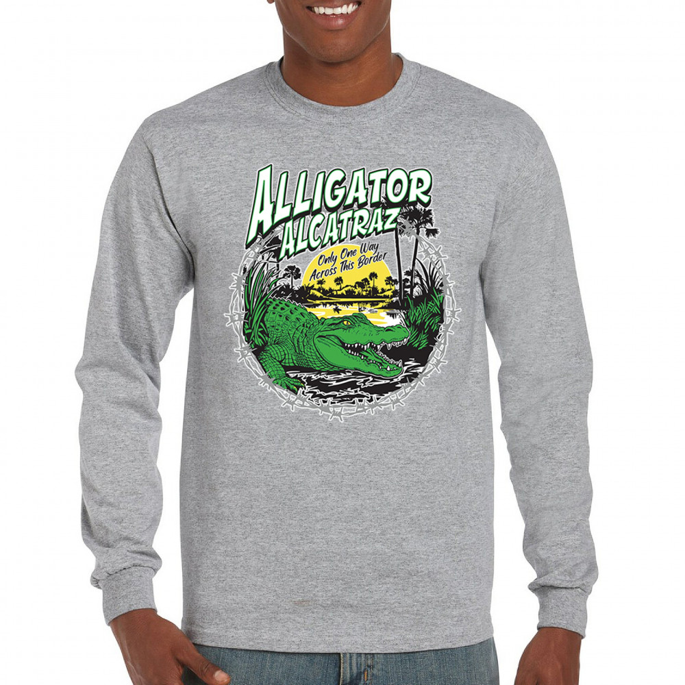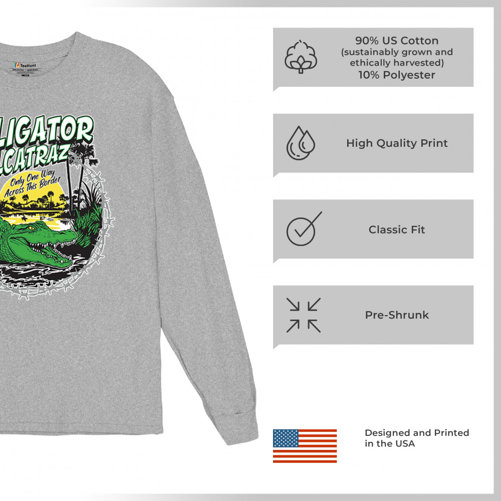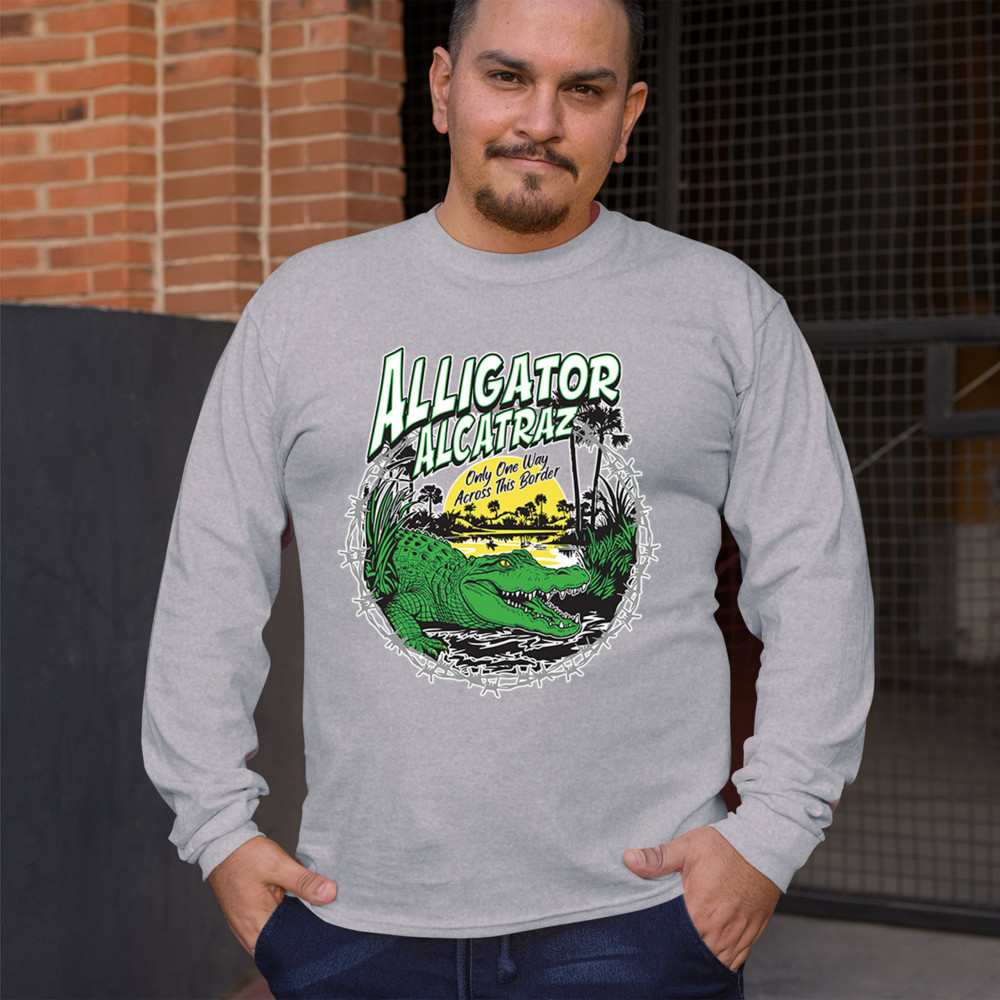 Alligator Alcatraz design with border security message. For conservative, Republican, and patriotic Americans who stand for America First values.