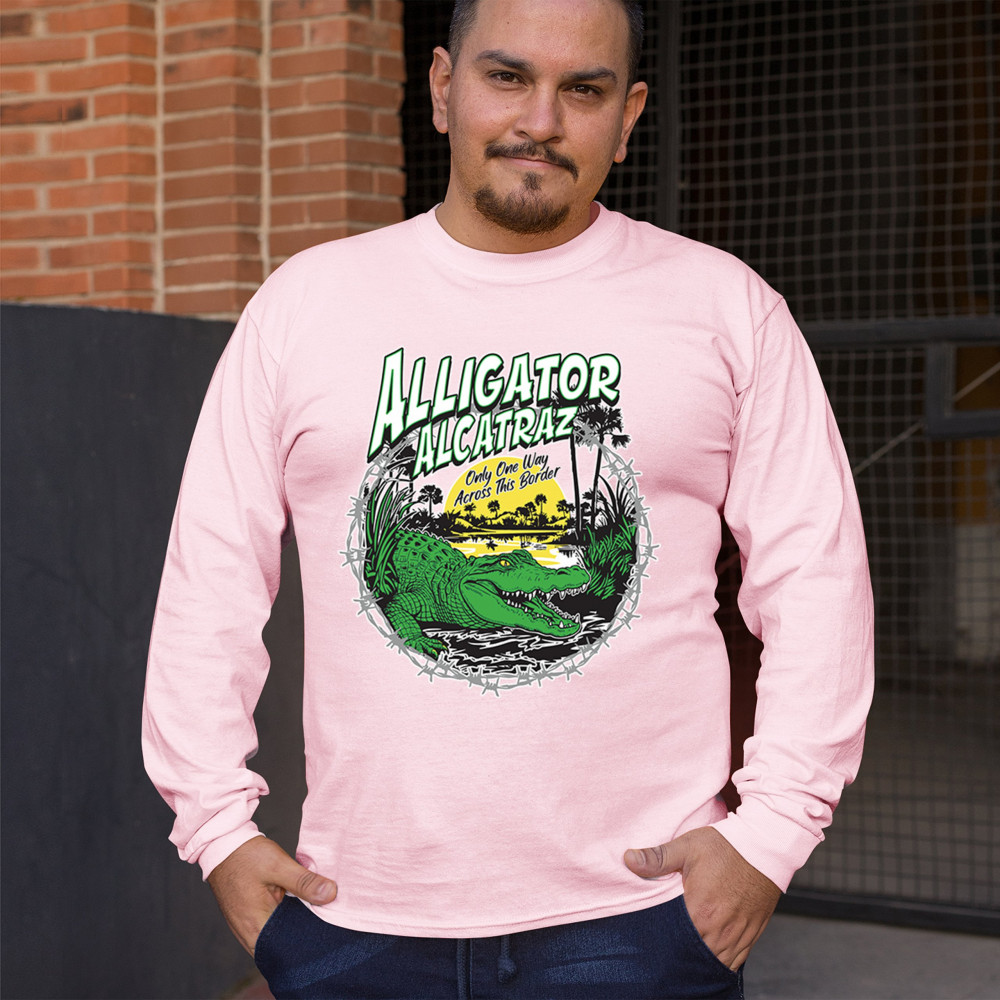Alligator Alcatraz design with border security message. For conservative, Republican, and patriotic Americans who stand for America First values.