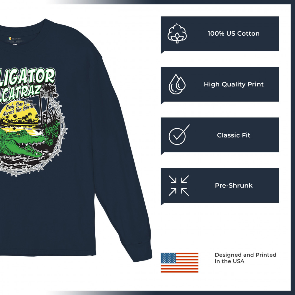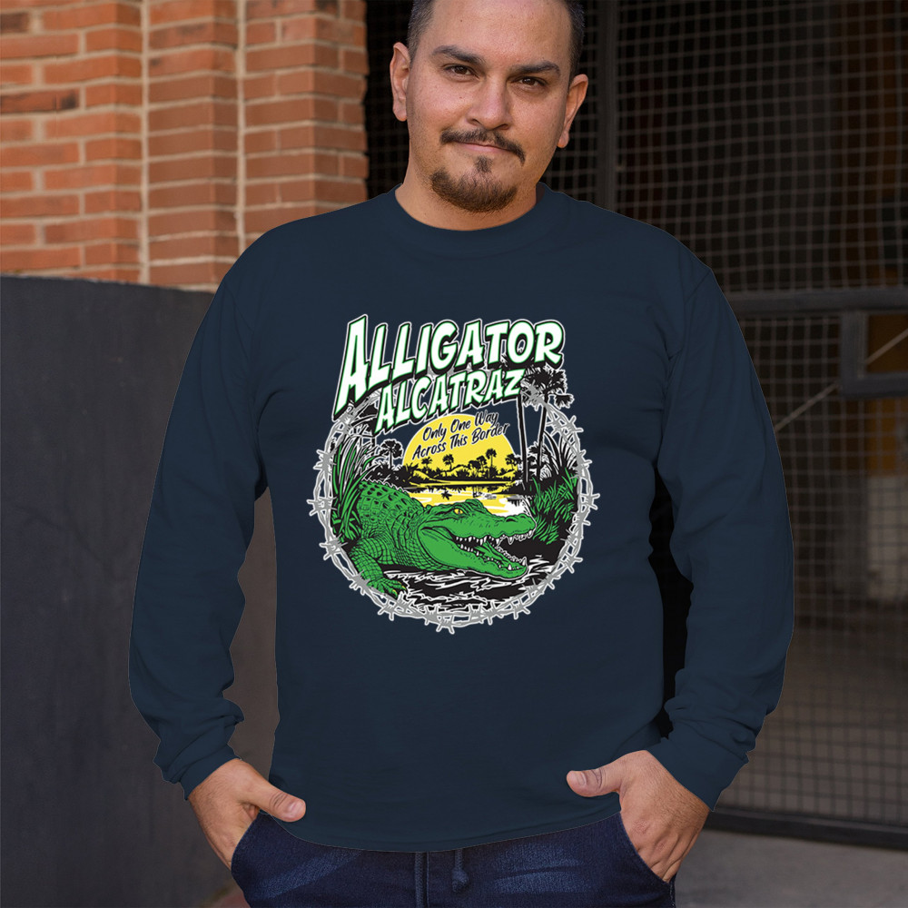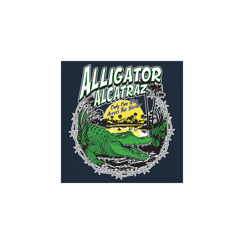 Alligator Alcatraz design with border security message. For conservative, Republican, and patriotic Americans who stand for America First values.