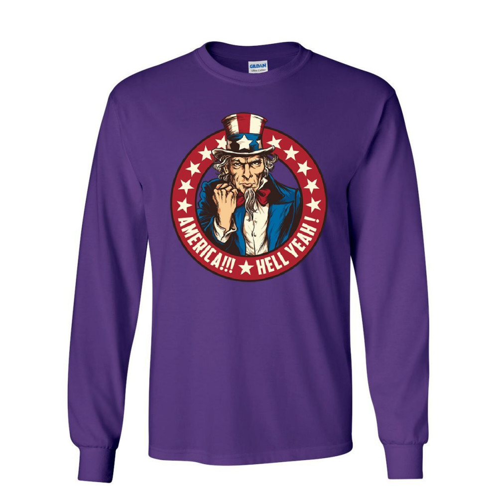 AMERICA HELL YEAH long sleeve t-shirt uncle sam patriotic stars and stripes tee purple