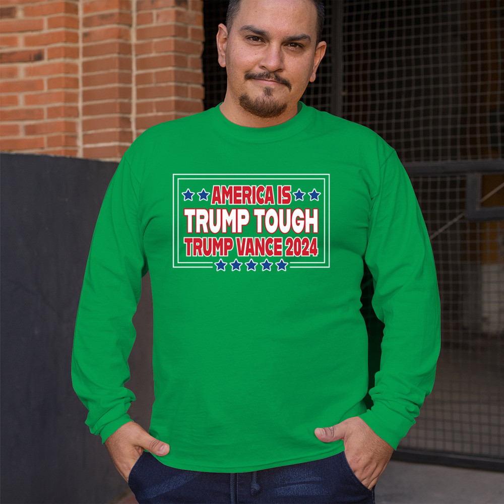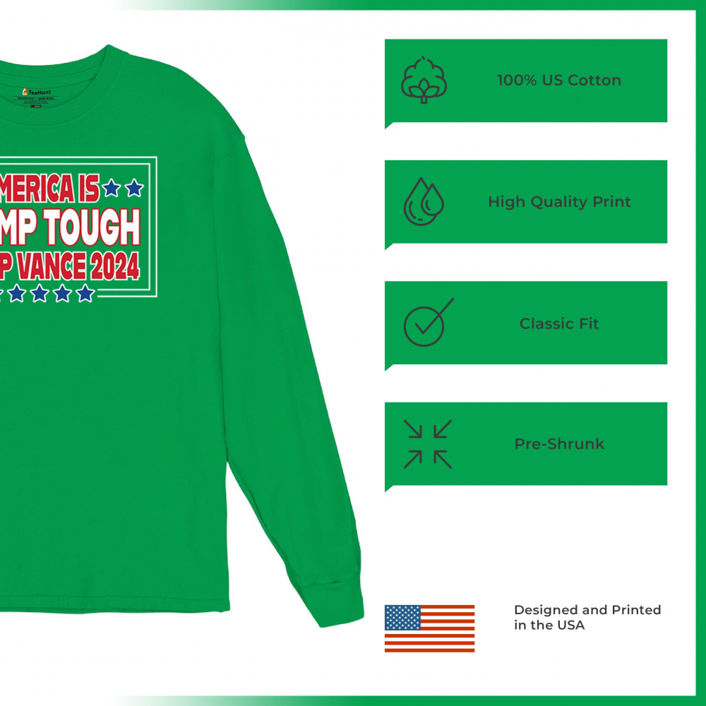 Support Trump and Vance in 2024 with this bold, patriotic design, perfect for rallies and everyday wear. Stand for America First principles and conservative values.