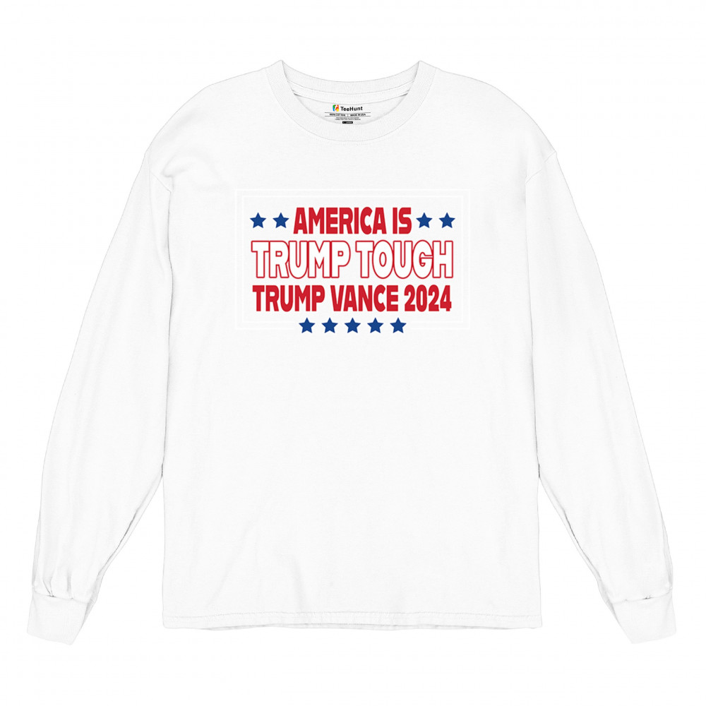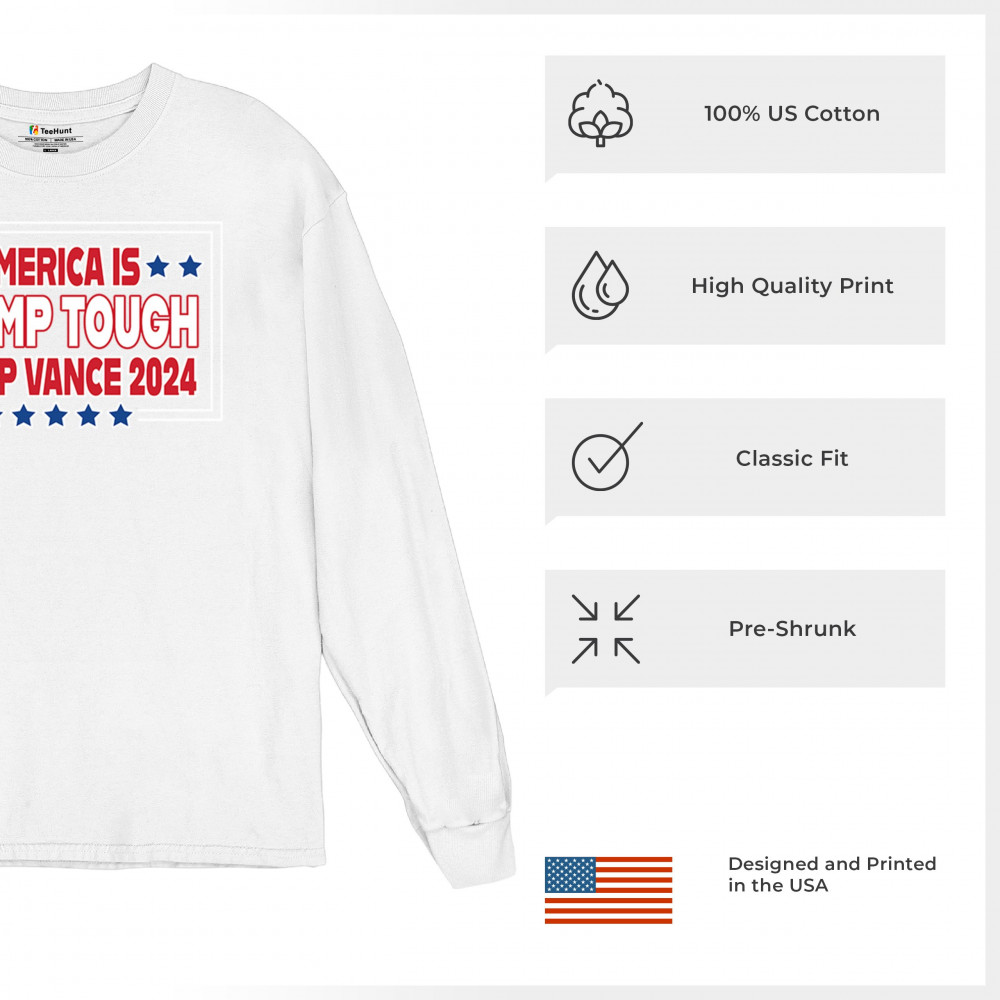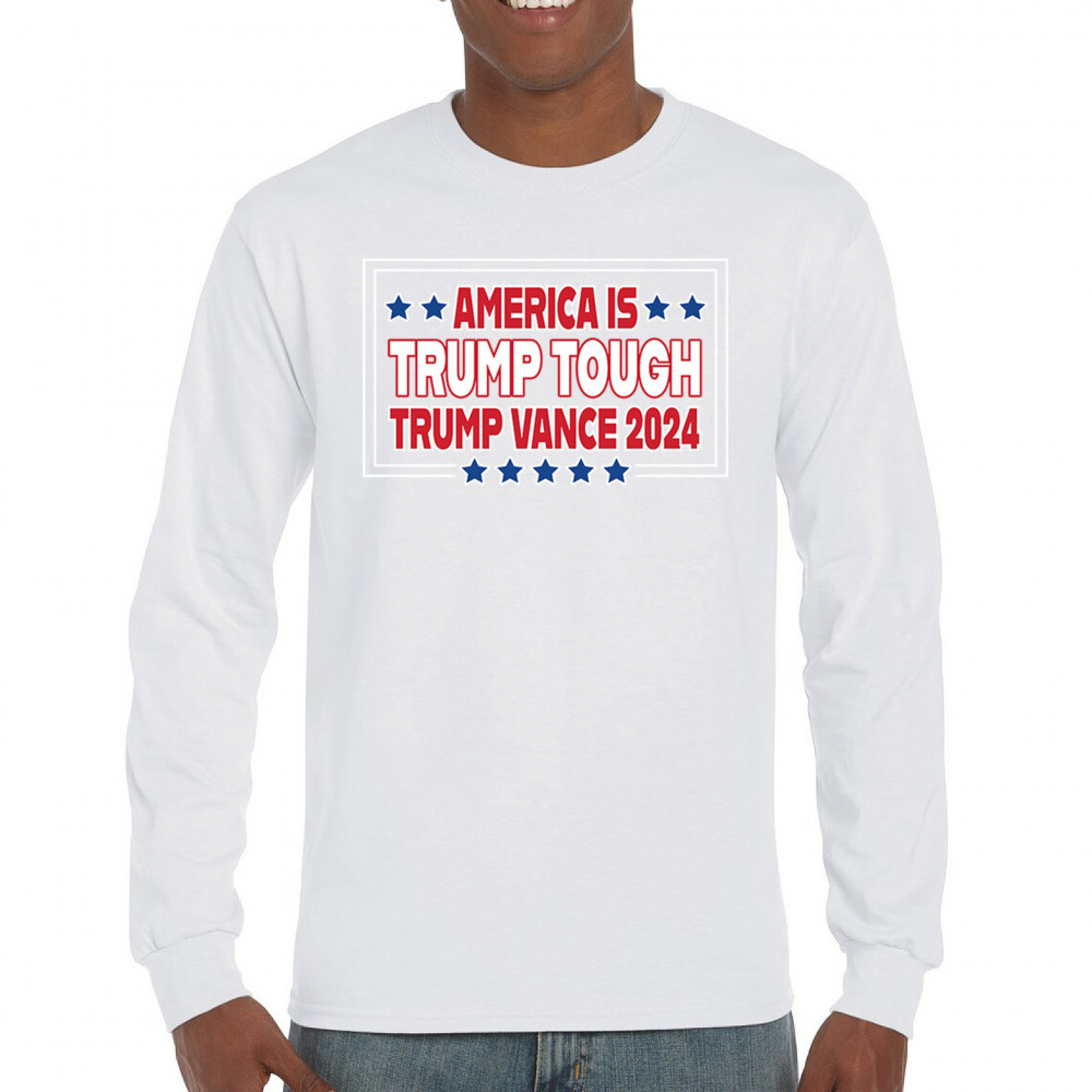 Support Trump and Vance in 2024 with this bold, patriotic design, perfect for rallies and everyday wear. Stand for America First principles and conservative values.