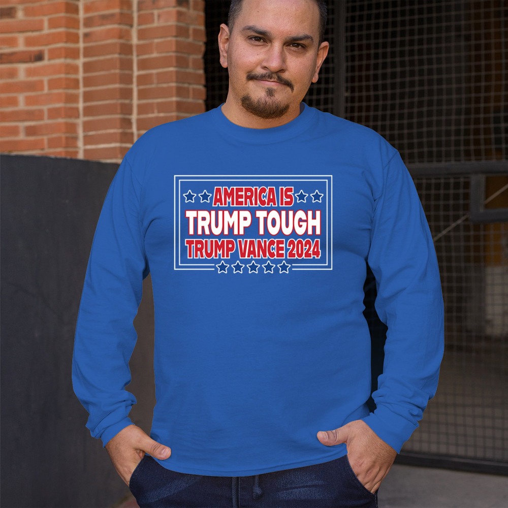 Support Trump and Vance in 2024 with this bold, patriotic design, perfect for rallies and everyday wear. Stand for America First principles and conservative values.