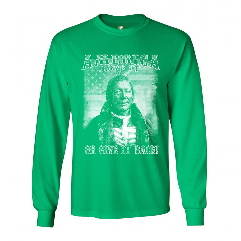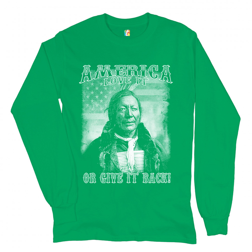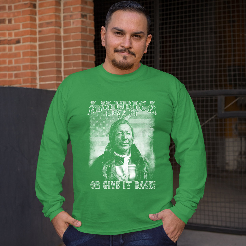 AMERICA LOVE IT OR GIVE IT BACK long sleeve t-shirt native american chief green