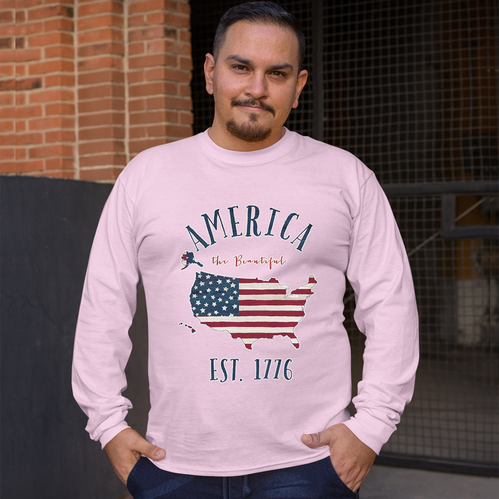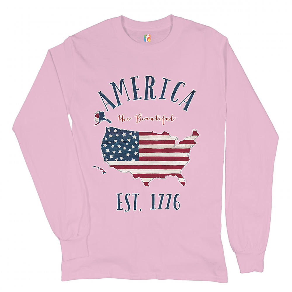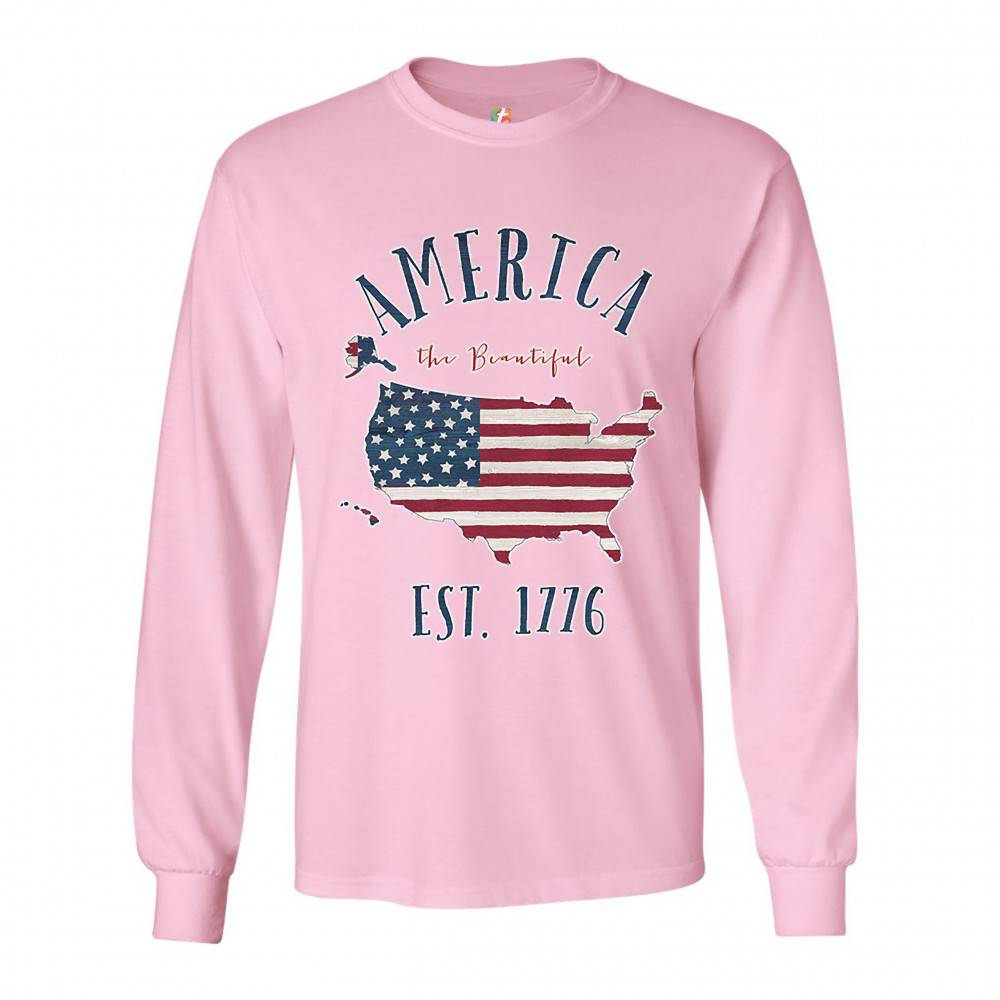 AMERICA THE BEAUTIFUL EST. 1776 long sleeve t-shirt patriotic 4th of july usa pink