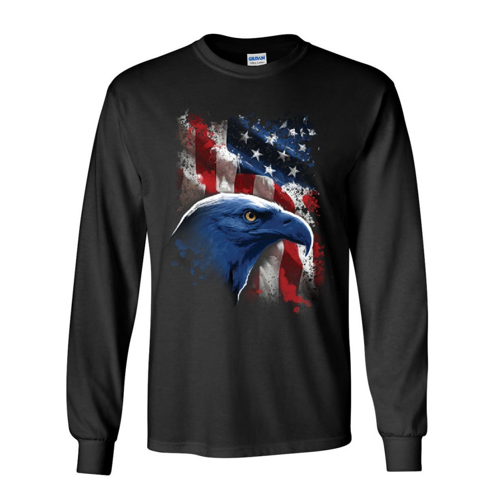 AMERICAN BALD EAGLE STARS AND STRIPES american bald eagle long sleeve t-shirt american flag 4th of july patriotic tee black