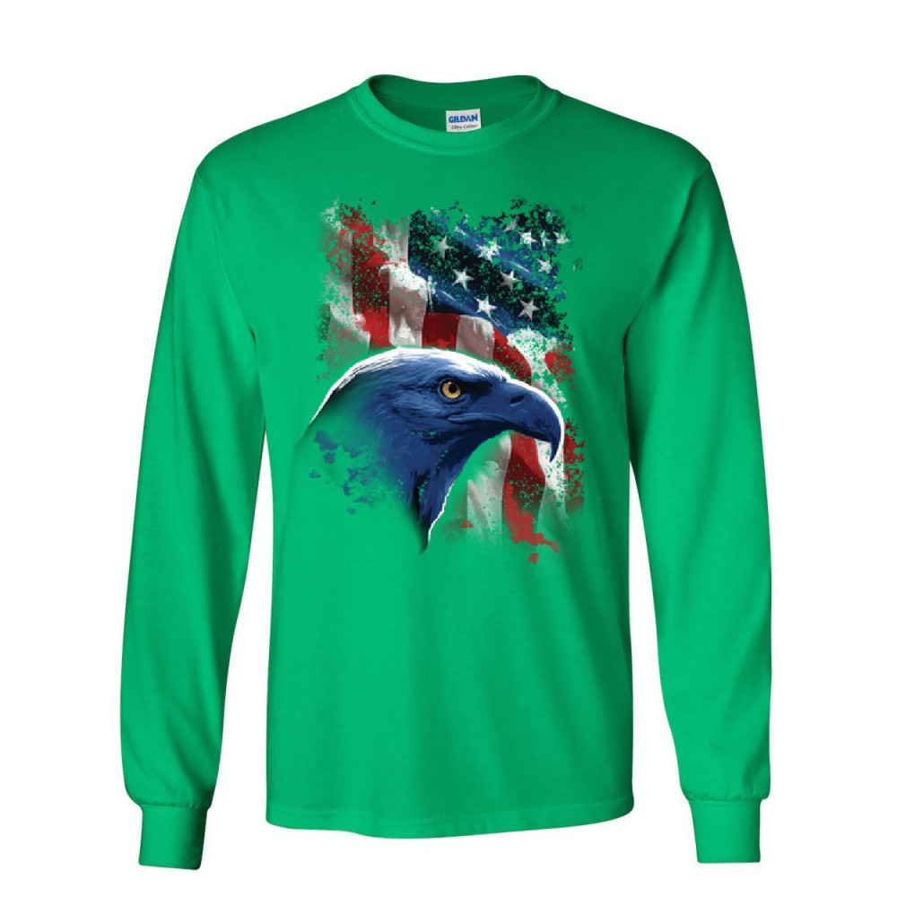 AMERICAN BALD EAGLE STARS AND STRIPES american bald eagle long sleeve t-shirt american flag 4th of july patriotic tee green