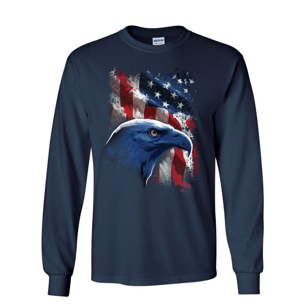 AMERICAN BALD EAGLE STARS AND STRIPES american bald eagle long sleeve t-shirt american flag 4th of july patriotic tee navy blue