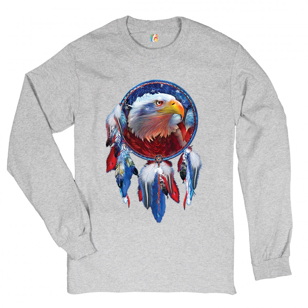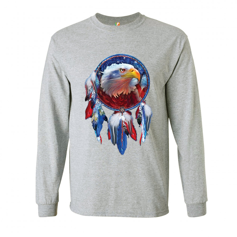 AMERICAN BALD EAGLE DREAMCATCHER long sleeve t-shirt native american patriotic gray