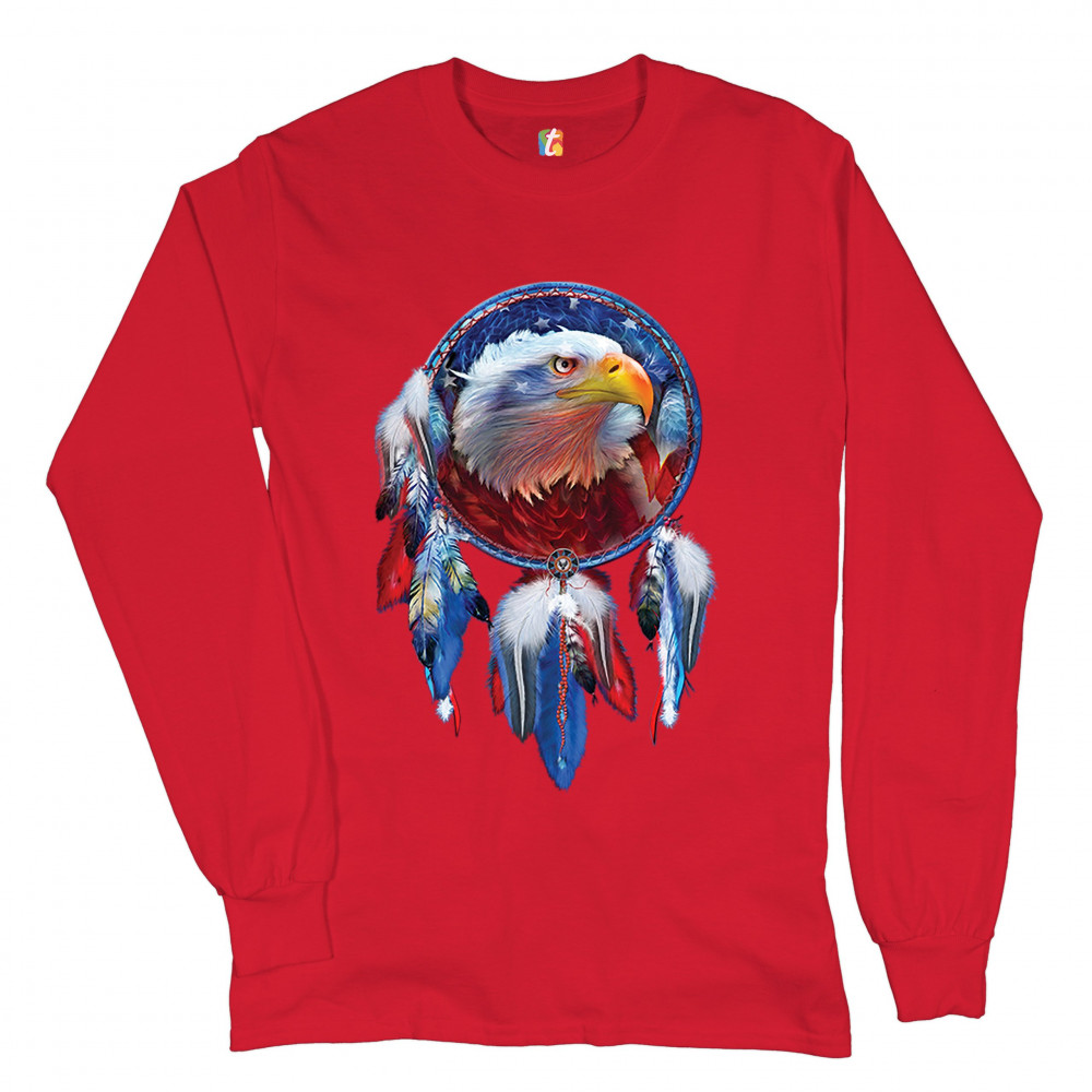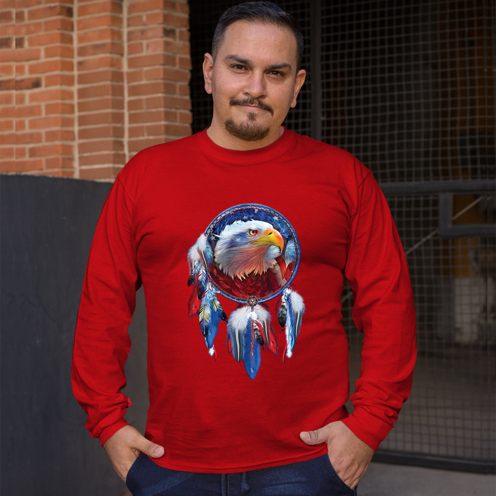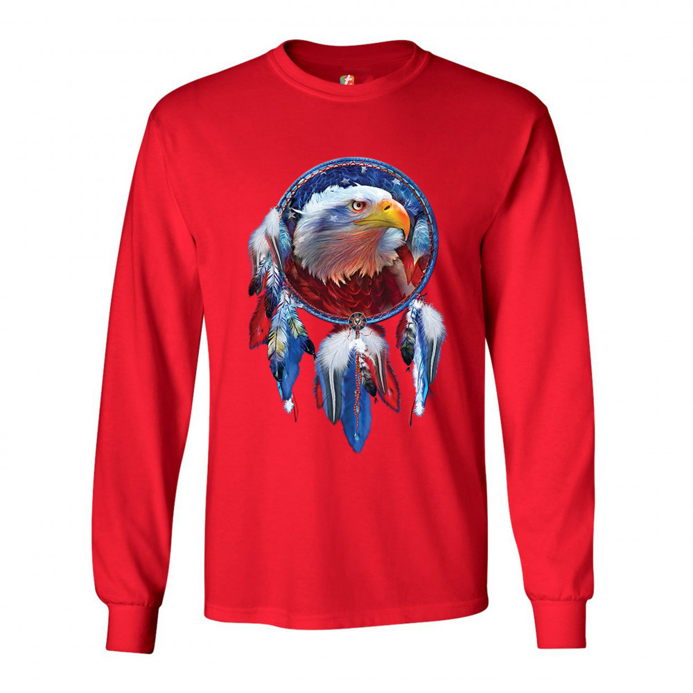 AMERICAN BALD EAGLE DREAMCATCHER long sleeve t-shirt native american patriotic red