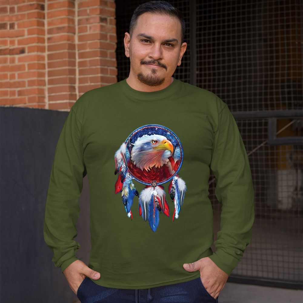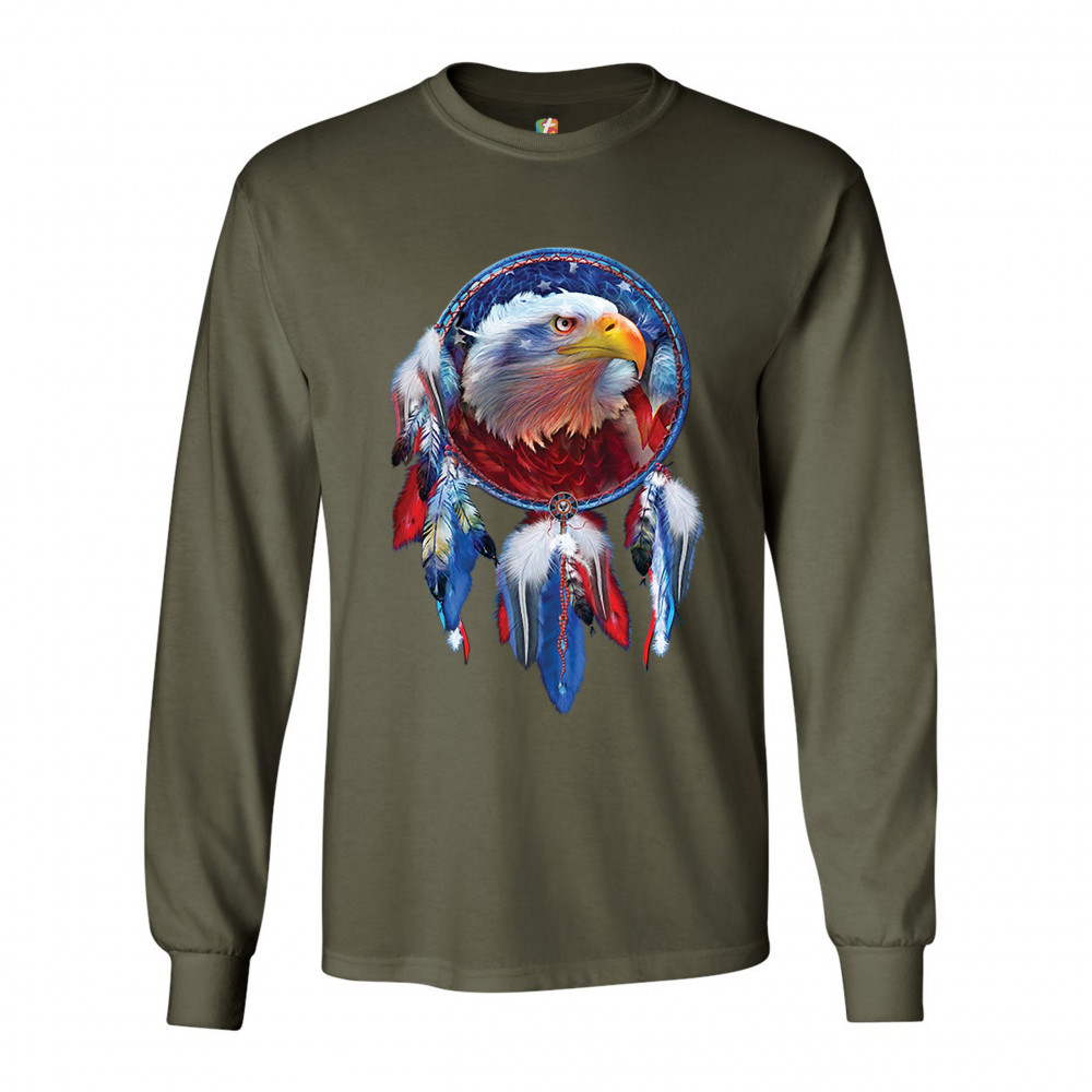 AMERICAN BALD EAGLE DREAMCATCHER long sleeve t-shirt native american patriotic military green