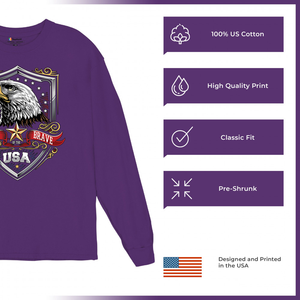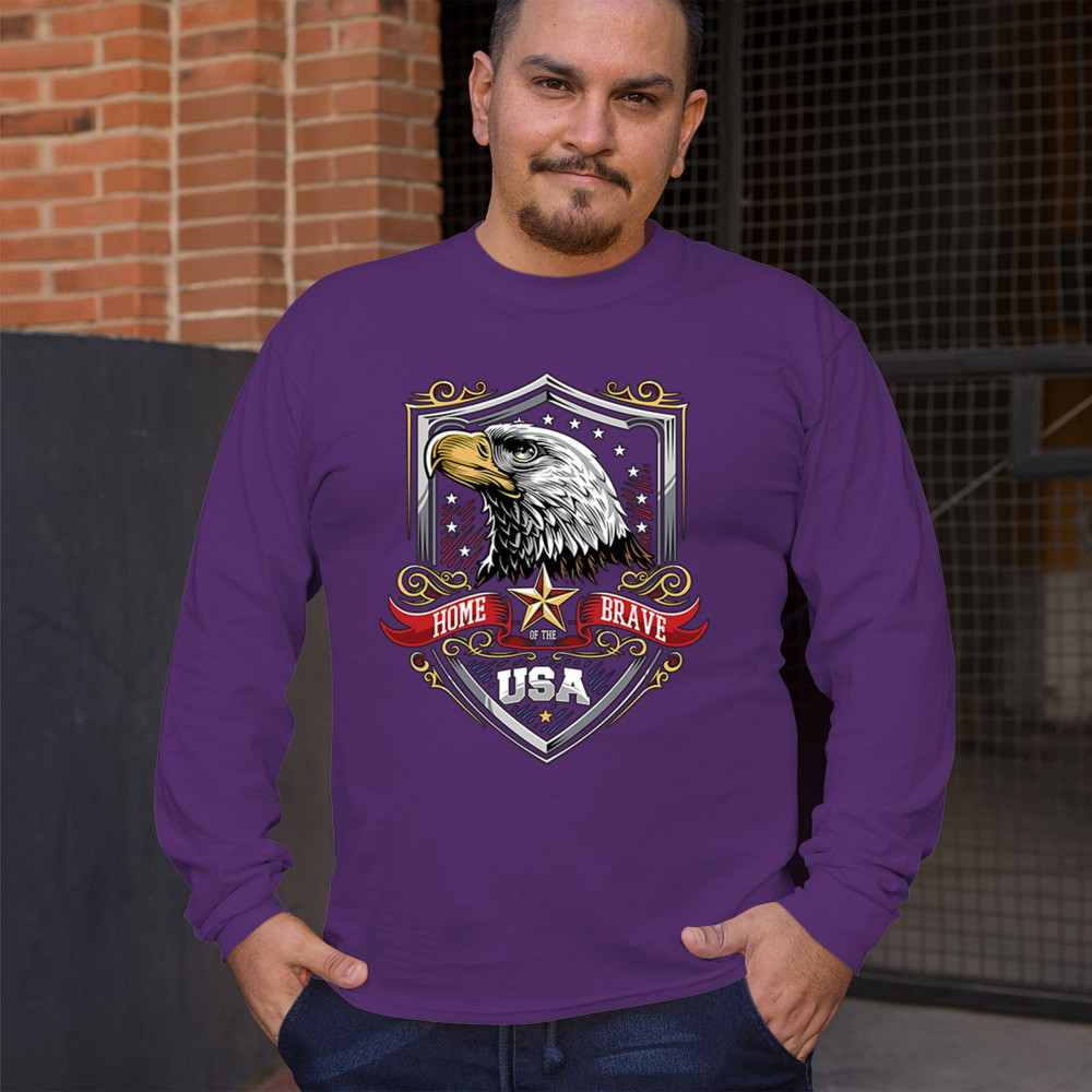 Honor American spirit with this patriotic eagle shield design shirt. Featuring a bold bald eagle emblem, stars and stripes shield, and red white blue accents, it’s perfect for Veteran’s Day, 4th of July, and military pride. A true American pride shirt for those who live by “home of the brave, land of the free.â€