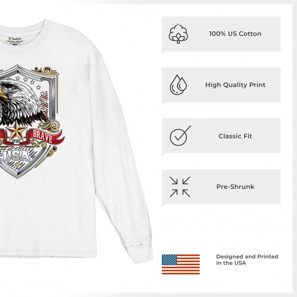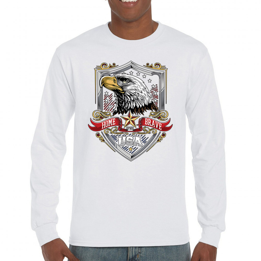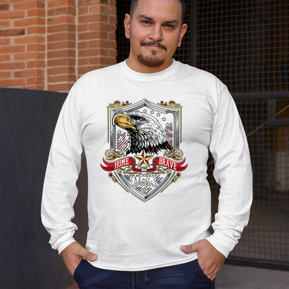 Honor American spirit with this patriotic eagle shield design shirt. Featuring a bold bald eagle emblem, stars and stripes shield, and red white blue accents, it’s perfect for Veteran’s Day, 4th of July, and military pride. A true American pride shirt for those who live by “home of the brave, land of the free.â€