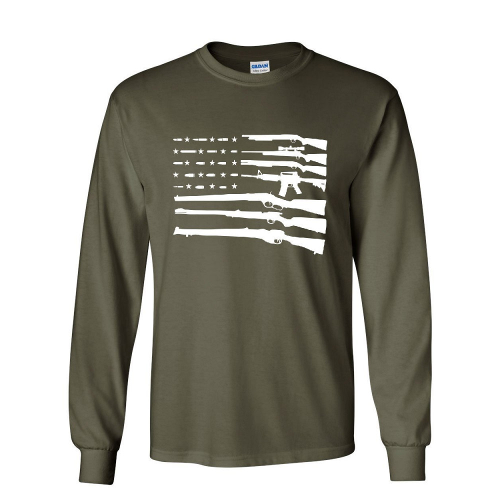 AMERICAN GUN FLAG american flag guns 2nd amendment long sleeve tee gun military green