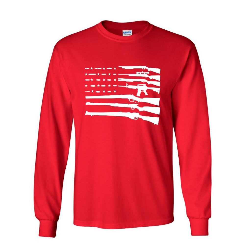 AMERICAN GUN FLAG american flag guns 2nd amendment long sleeve tee gun red