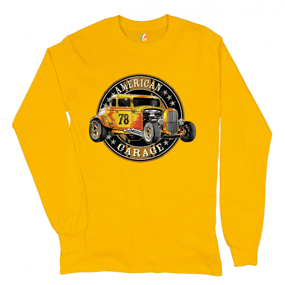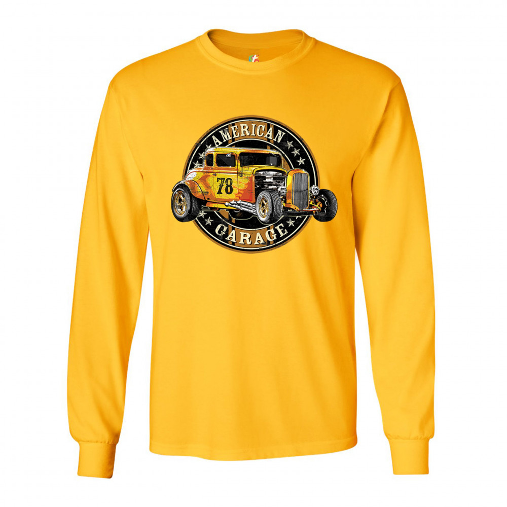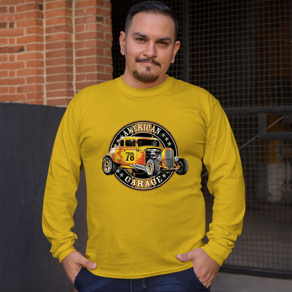 AMERICAN GARAGE long sleeve t-shirt retro hot rod vintage american muscle yellow